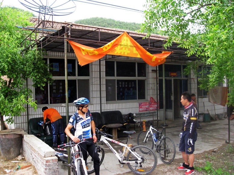 天色越来越黑了,下车准备好电筒,一转身舞剑停在边上,我晕,又追上来了。舞剑也不骑快了,陪我慢慢骑,不过QS见坡欢的本性难移,过了禅房村,到了那两公里的陡坡,就看他摇呀摇的没影了,这陡坡我还是慢慢蜗牛爬吧!再次见到舞剑,是在他认为的山顶上,哈哈!他没爬过禅房,也上当了。天黑了,放坡也不敢放快了,慢慢放坡到妙峰山,旁边有家饭馆,只有玫瑰饼,我想吃大饼,呜呜!等大牛和膏药会合后,吃了玫瑰饼,还想向妙和阳最后的十公里坡挑战,老板告诉我们妙关门了,呃!!!一看时间,晚上九点了,当然关门了,四人无语,放坡回家吧!