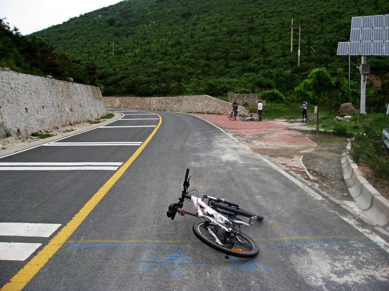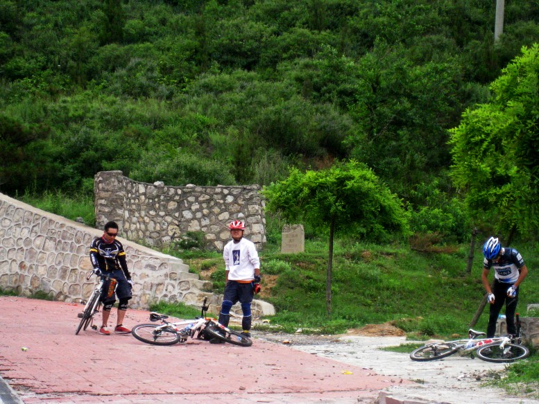 舞剑、大牛、膏药经常看俺作业贴的人对他们都很熟了,俺们四人皆是山地车,这次因为大牛的山地车要修理,只能骑菜公路,后飞只有六速,这个爬陡坡是不轻松嘀!呼呼!
