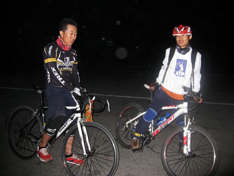 晚上放坡真是痛苦,山里气温底,本来衣服又汗湿了,放坡冷风一吹,好冷呀!还有可怜的手,放了一天的坡,本来就酸疼了,还要捏刹慢慢放,今天没爬坡爬吐,放坡放吐了。