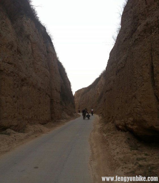 为这里的土坡是个小山包,这边可是黄土高坡啊。那大深坑看着都害怕!废了九牛二虎之力终于挠扯上去了。腿都不是我的,酸疼难受,汗流浃背,所有的疼痛让我心里开始有了抱怨。以前也有过出行的经验,自己很清楚现在自己必须调整心态,要不会更累。幸好不一会就开始了下坡,一路平道,很快骑行了十几公里。在一个镇上的路边摊吃的包子油条,豆腐脑什么的,味道和家里不一样。但是也算过的去吧——也可能是饿了。吃完早饭大家装备好水,继续奔着黄河骑行。 张浩现在是整个车队的导航'现在队里都认同张浩的路线。我们现在的路线是这样'有省道不走国道'有县道不走省道'有村道不走县道'今天几乎都是村道,可谓