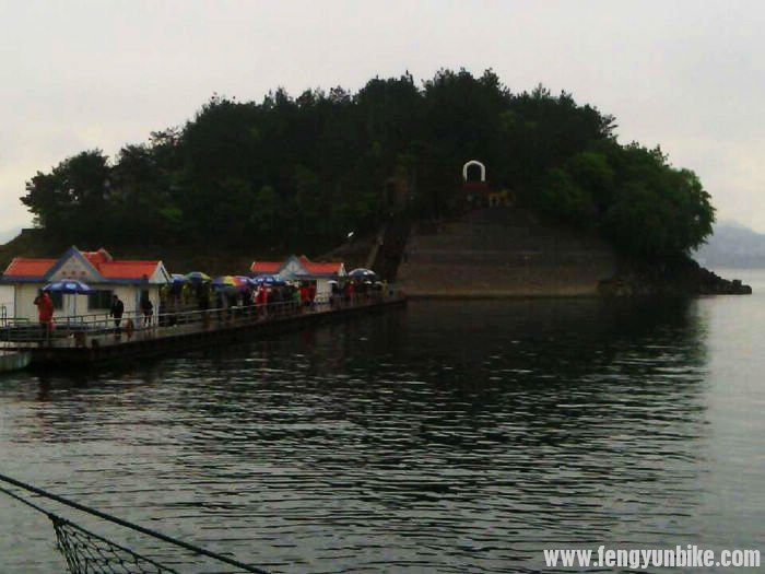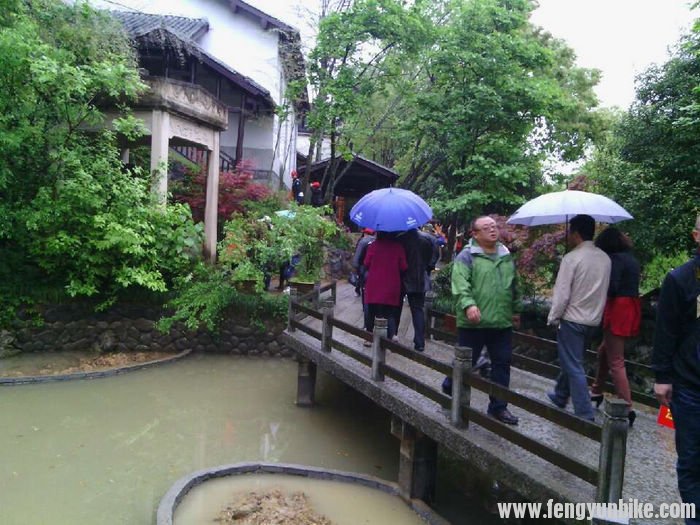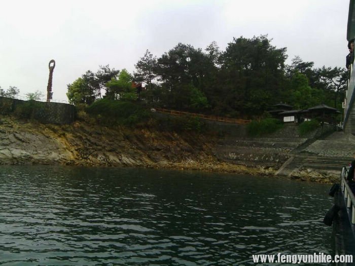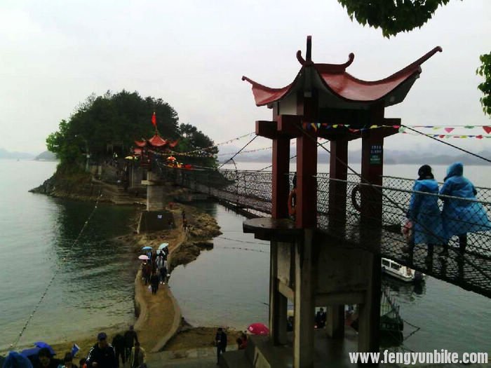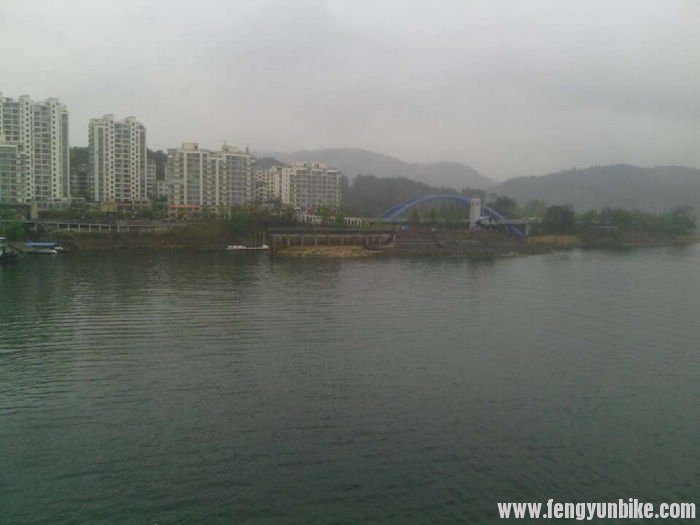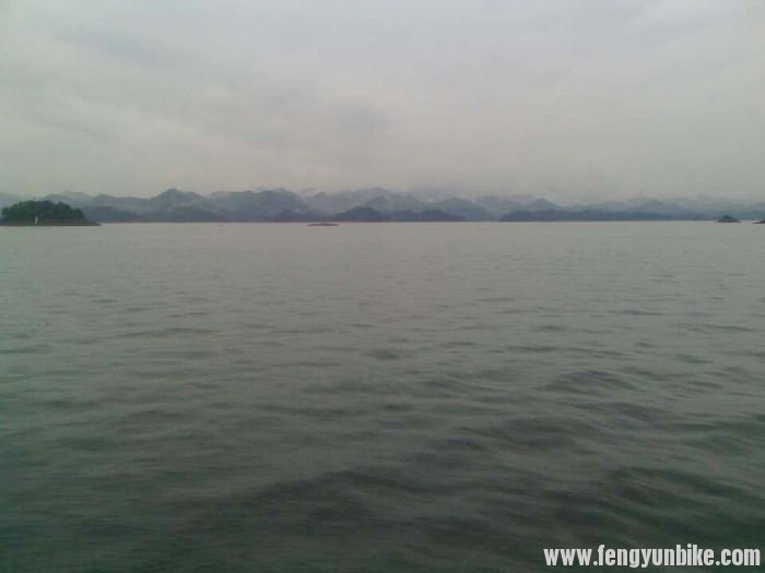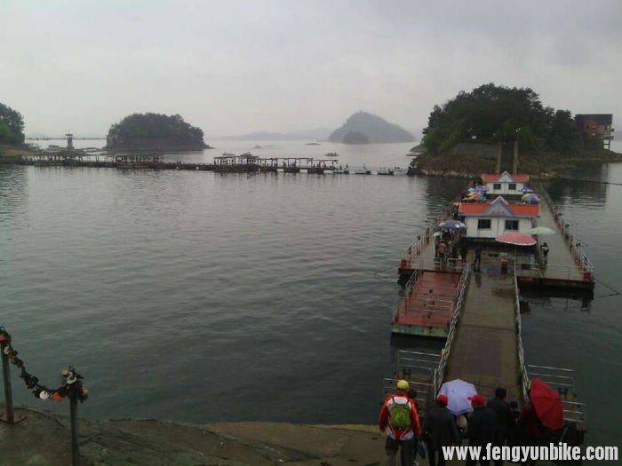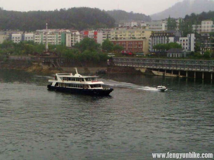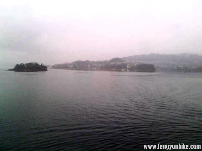 过桥收十元沒去,雨中从船上看远处的山如同水墨画