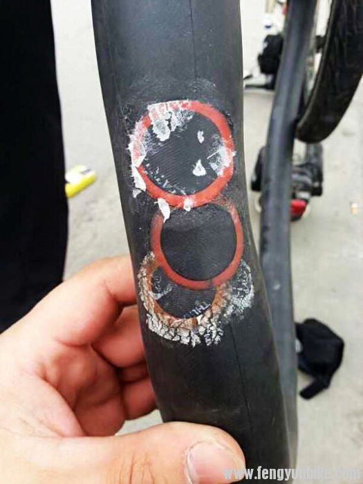 早起下了一会小雨不是很大,没有耽误大家的骑行,大家骑行也很快,几乎没怎么费力就过了汉中。中午吃的鱼挺好吃的,下午也算顺利到了勉县。之后由于天还早,大家决定在往前骑行二十公里,在山脚下的一个镇上住。不到四点大家就快到镇上了,就没有着急。路边的风景很美,我们边走边玩快五点到了镇上。到了镇上一看都傻了——一个小旅店小的不能在小了,老板忒气人,看我们前不着村后不着店的,那种房子和我们每个人要二十元,不讲价!大家商量一下决定继续骑行,就这样大家进了山。山路变的越来越难走,最后几乎变成了土路,还好就有一段盘山路。下了山到了一个镇,还算没白费辛苦。这里环境还算挺好,大家住下了。今天的景色特别的漂亮,没有对不起我们一路的艰辛。 这三次扎胎都扎在了一个地方,这几率比中奖还难吧