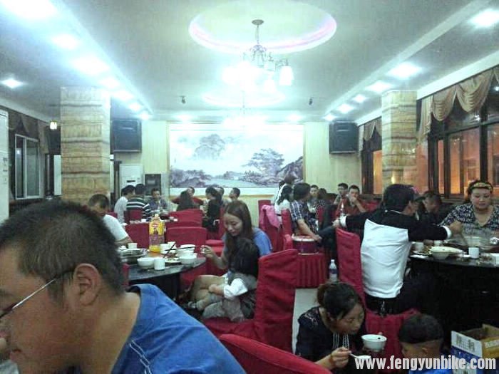 在山顶休息等着队伍,大家都上来以后开始下坡,但是坡没有下多久又开始了驼峰坡,还好一路总算顺利的到达了目的地普安。真是一个很繁华的城市,在两山中间。在下坡的时候很想停下来拍张照片,可是坡太大了没停住,就一直下到了县城。县城不大,很热闹,没什么好东西和好酒店,但是路边的商贩很多,卖什么的都有。路边都是一些吃各种烧烤、油炸类食品的人们,各种小吃。找的宾馆很便宜,三人间才七十,但是在五楼很费力才爬上来。在三楼有个火锅店,人很多,大家洗漱完毕以后,在三楼吃的火锅,主要是吃梭边鱼。挺好吃的,人也很多,地震可能对餐饮没有影响吧,我晚上喝了二两酒,喝了不到一半就醉了,上楼时两次差点跌倒,我身体的酒估计都挥发了。