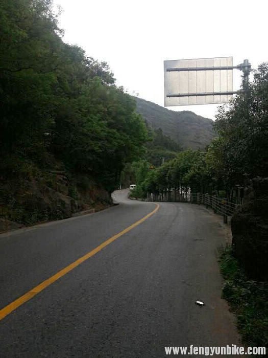 大山像是一座屏风一样,感觉好像没路了。走到山脚下大家已经领教了蜀道难了,但是真正的困难才刚开始。既然选择了那就要去征服它。我决定我要一口气登顶,到了最后调到最轻变速器还是很难骑行,腿都感觉不是自己的了,气喘吁吁的终于看到了山顶的隧道。等着大家都上来以后,满心欢喜的期待着享受过完隧道的下坡,这坡真对的起“蜀道难难于上青天”这句话。我们感觉自己已经在山顶走了好几个小时了,虽然累的要死,但是风景真是没得说,每次有小的下坡,都想闭上眼睛深深吸一口气,感受有种在重山中飞行般的感觉。但是路还是要走啊,最后到达山顶时,我看到了前面的那个老大爷,但是他没有停留,我也没有追赶他。