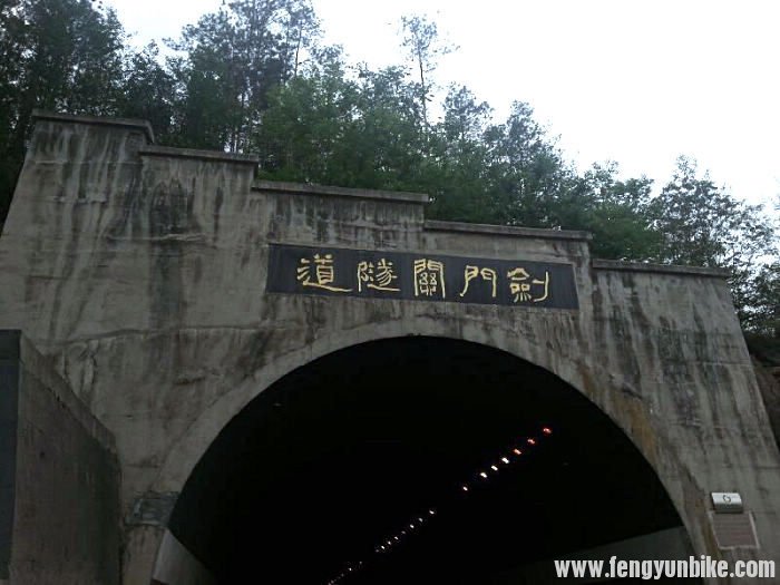 我们刚要启程,邢大爷扎胎了。就怨他的破嘴啊,总是说自己是万里不扎胎,这回天天扎。蒋哥回去了以后,补胎就是我的事了。补完以后继续,大概有了三十公里驼峰坡以后,又开始了盘山路。一路山坡,这时我们到了剑阁县。听说当年是诸葛亮在这里守城,刚一进城就受到了无数“空军”的袭击,也不知道是哪来的那么多虫子,不夸张的说比下雨还密。耳朵、眼睛、身上、鼻子里,满天都是虫子,眯着眼睛骑行了几公里终于少了一些,但是也开始爬坡了。这就是传说中的“蜀道难难于上青天”这句话的原地——剑门关。