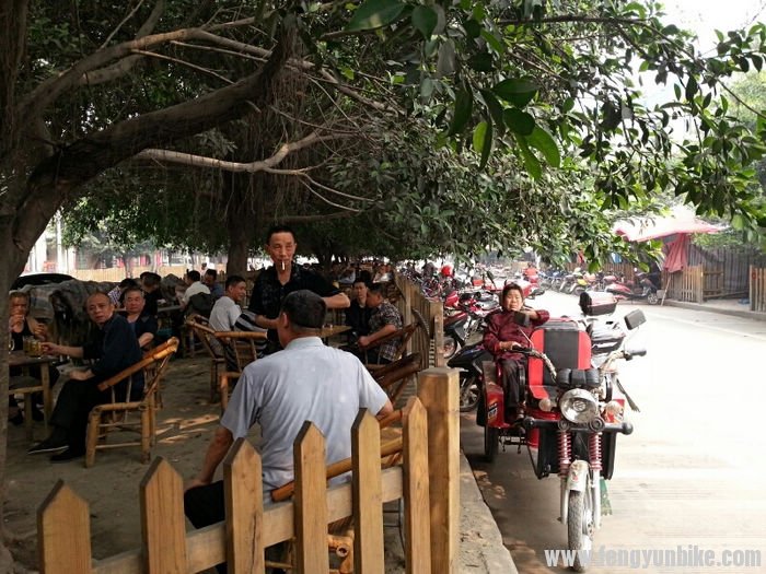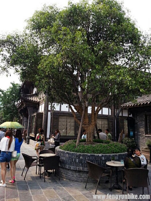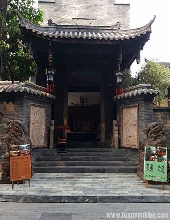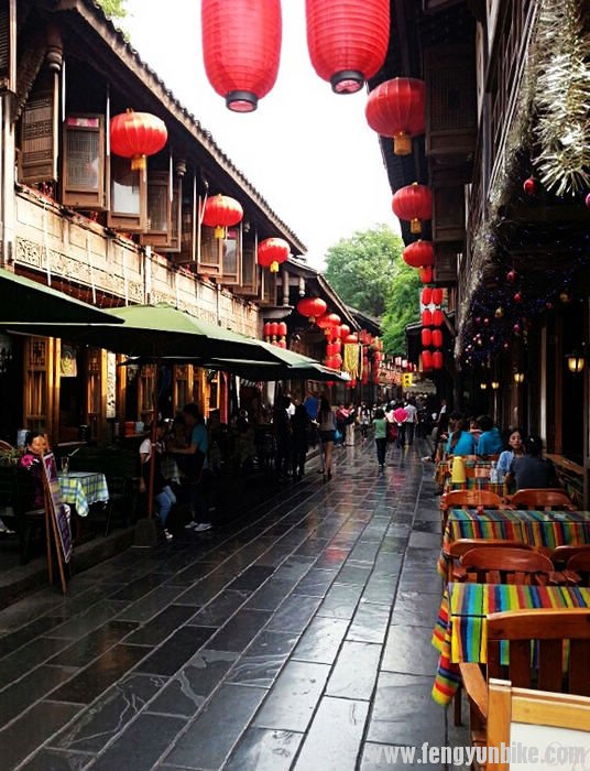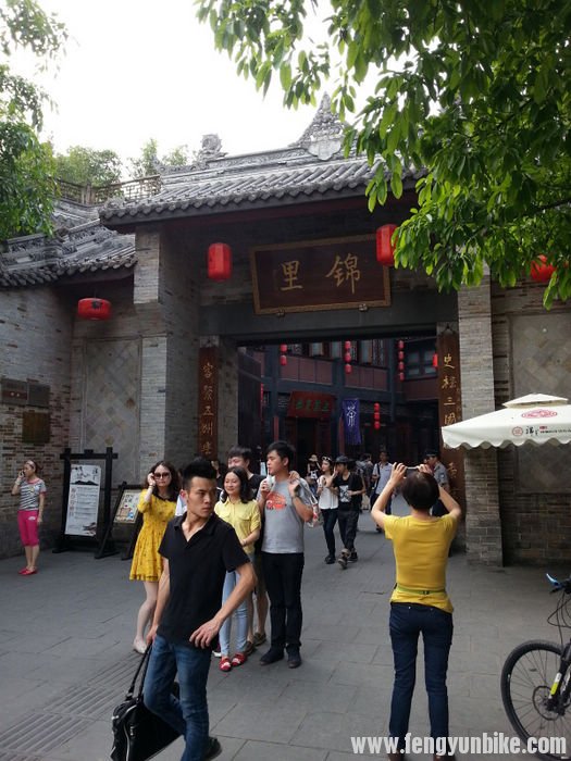 洗完澡的车子就是漂亮啊,之后我们去了车行。那破捷安特的伙计也不知道会不会检查,就随便的动了动这、动了动那就说没事。没事就没事吧,正好我们也饿了,在车店旁边找了个饭店。我们几个在外面吃的,天气太热了,在他们吃饭的时候我好好把车擦了一遍,坐下来吃饭的时候觉得菜做的很棒,环境也是一流。 在老街上避暑的人坐满了这条街,场面很是壮观。成都的慢节奏生活真是太悠闲了,很是羡慕啊。每个人一个大茶杯,喝着茶水摆着龙门阵(聊天),要不就是棋牌室,一家挨着一家,好像城市里的人都没事一样。 和老板攀谈了一会,老板给出了我们两个能代表成都特色的地方——宽窄巷和武侯祠。吃完午饭天气已经很热了,我们很快就找到了宽窄巷,但是不让车进入,就是推着也不行。我让他们等着我,自己进去拍了几张照片,用记录仪拍下了整条街,古香古色的很有特点。里面很多酒吧非常的漂亮,要是有时间坐下来在这里看着过往的人群,也是一件很惬意的事。成都很热,成都美女很多,穿的更是很少,小女孩看着都像是小太妹一样,看着就横。