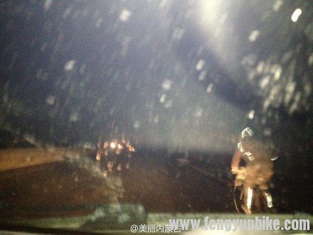 6:50到达雅安,吃早饭 下午13:25,雅安市天全县,马上到二郎山隧道 14:12,二郎山上 15:55,看到了丁涛,骑的很潇洒——两人相隔大约十分钟路吧,两个铁汉! 20:52连夜翻折多山——海拔4298米,折多山开放Wi-Fi,信号超强 21张树桥和丁涛相遇,山上下起了雨,很冷! 从今凌晨到傍晚,已经骑行了325公里,休整完,他今晚会再继续吗?下一站海拔4298米的折多山! (2013年5月8日零点成都出发到西藏,2160公里,最高海拔5030米,6条大河,13座4000米以上山口) 也许用不了多久他们会结伴一程。川藏线上从此留下一段关于骑行者的传奇故事! 21:29山上雾特大,能见度10米之内