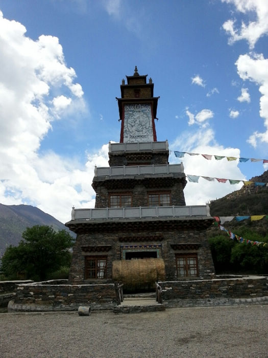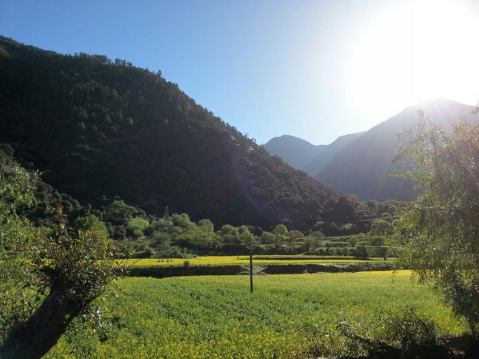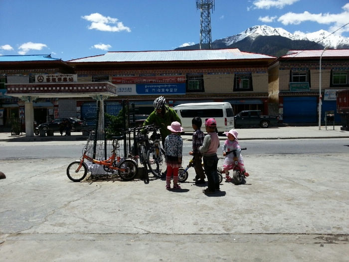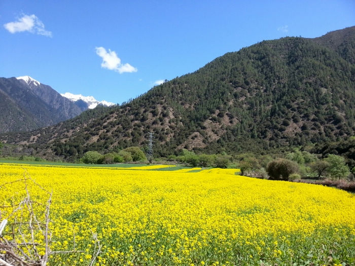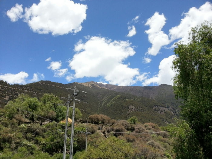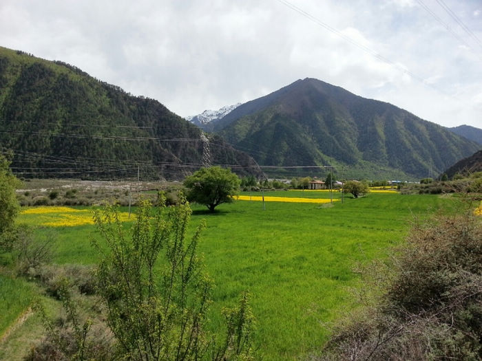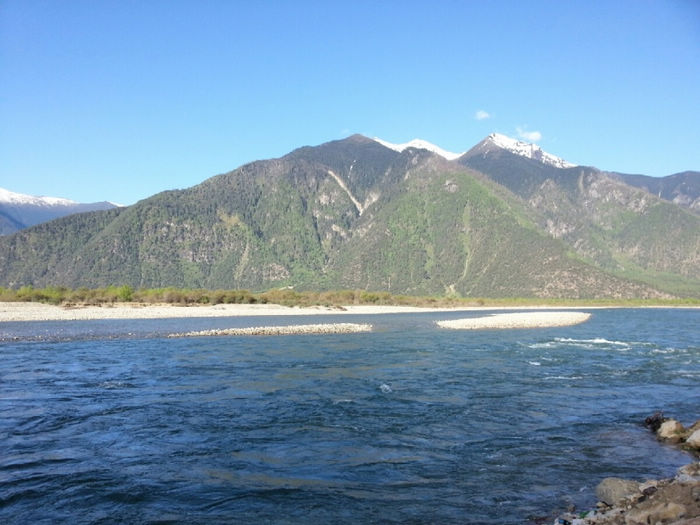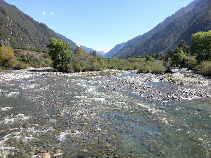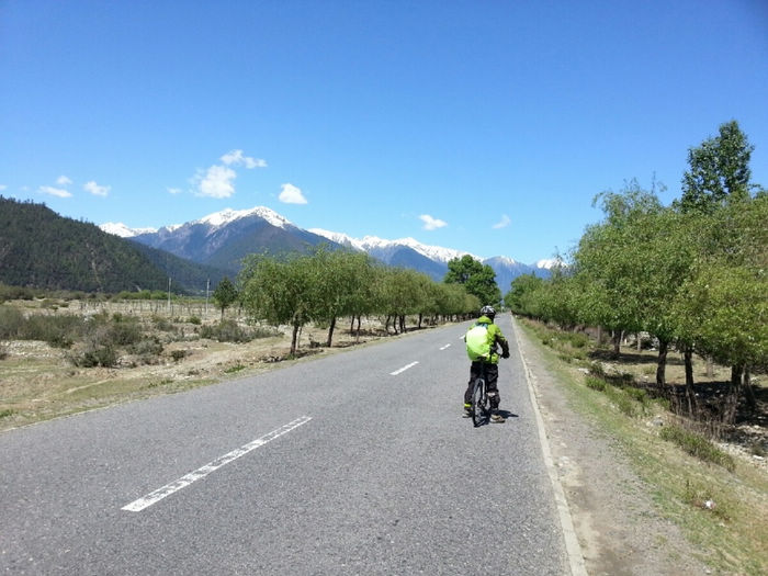 20130520,骑行第46天,川藏第22天。 八一(林芝地区)( 海拔2930)-更张镇-百巴镇-巴河镇-工布江达(海拔3440):柏油路:130km 从八一出来路况有较多起伏,但都不是很高,基本都是缓上坡。 K4249开始经过一小段森林,算是骑行中换一点风景口味吧。 尼洋河在身边静静流淌,相对于前面见过波涛汹涌的帕隆藏布,简直可用恬静来形容她。水很干净,呈现出透明的绿色。难道真是传说中神女的眼泪汇成的吗?有人形容尼洋河的水“飞花碎玉”,我觉得非常贴切。既说出了它翡翠般的绿,也道出了它的洁白如霜的浪花。河里有很多沙洲,树就直接生在水中,一派湿地的风格。 这一带是门巴族人的聚居地,门做的果然特别漂亮。门巴人极尽繁复之能事,门用金色绘出图案,还在门边装饰斗拱。房子的屋顶都是统一的蓝色、粉色、紫色,据说全是广东省援建的。路上的牛啊猪啊都对来往的车辆熟视无睹,仿佛国道才是它们的地盘。 今天到更张镇没有吃饭。中午到百巴镇吃的午饭,两个地方都有很多饭馆可以吃午饭。K4305离开林芝县,到达工布江达县境,再前行1km为秀巴千年古堡。继续加油吧!下午3点以开始逆风骑行。 到达巴河镇,我们遇见20多天来梦寐已久的路牌:“拉萨 326KM”。拉萨!拉萨!我离你已经越来越近啦! 巴河在这里面汇入尼洋河。直行到拉萨, K4331附近有西藏唯一的猕猴观景区。转过K4358最后一个弯,工布江达县城就在眼前了。终于完成了今天的任务。今天头一次没有遇到下雨,下雪。以前是和严寒做斗争'今天是和酷暑做斗争。今天的沥青路'被太阳晒的散发着刺鼻的沥青味。从早起我就开始刘鼻涕'流眼泪'直到中午'眼睛都肿了'下午的酷暑和刺鼻的沥青'还有大车的尾气'在加上逆风。对了还有屁股也疼。因为天气热的原因吧'刘大哥也疼。下午坚持了70公里。虽然困难很多但是我们还是到了'距离拉萨还有两天。