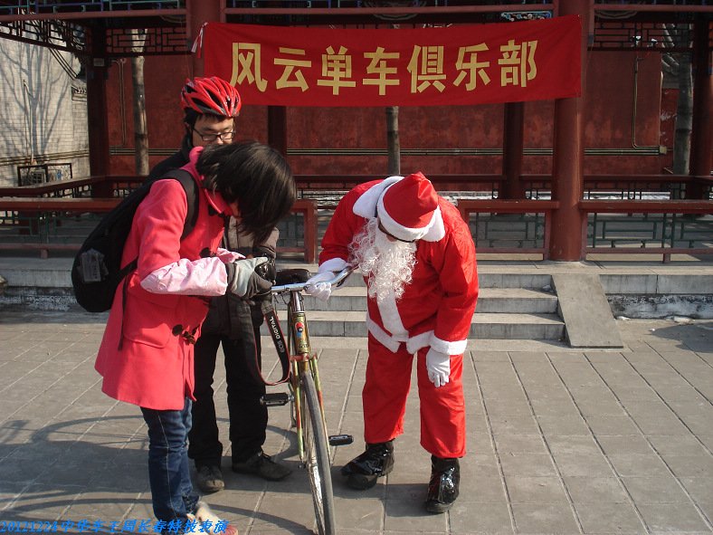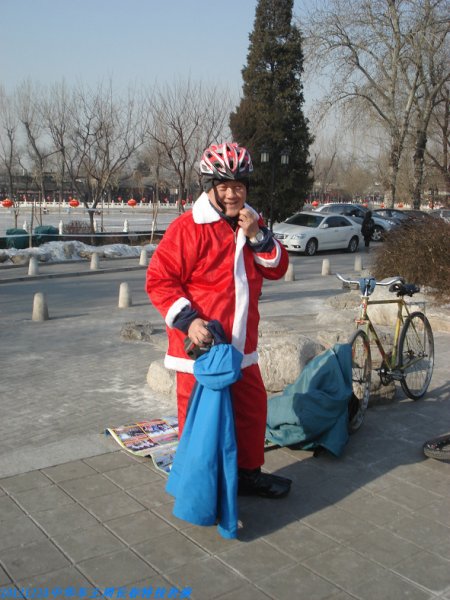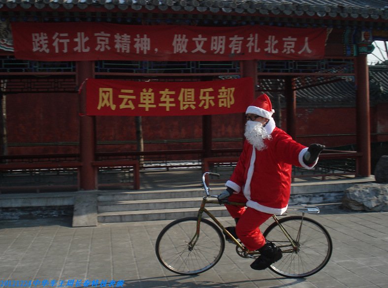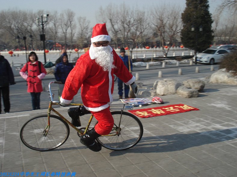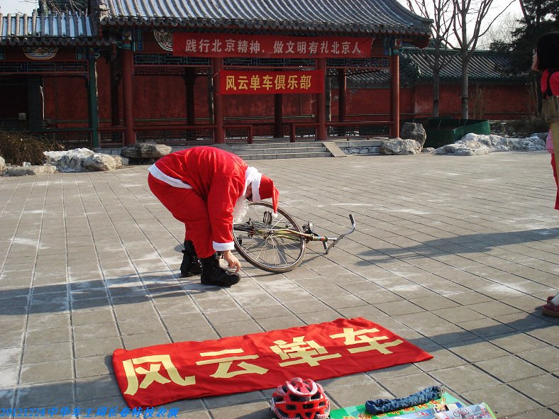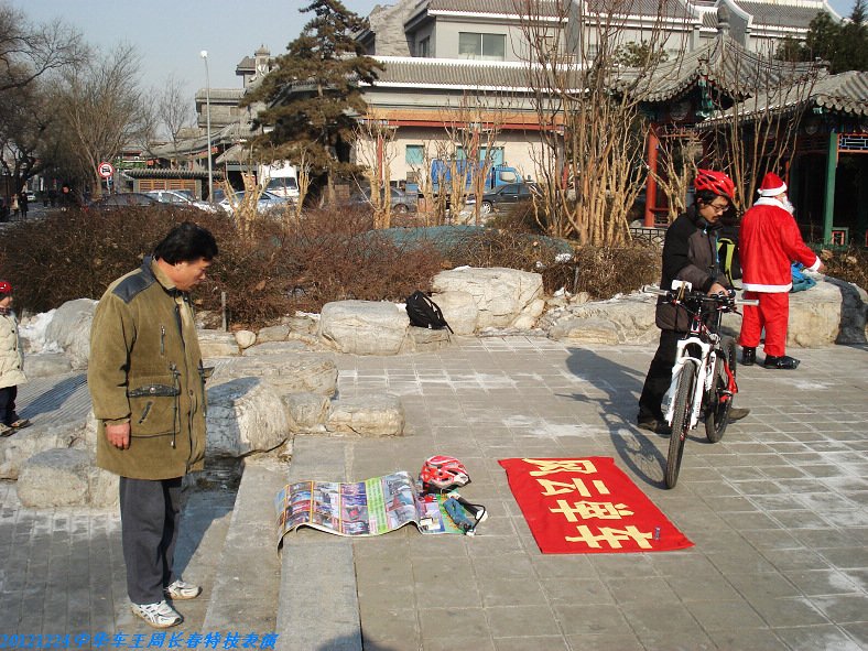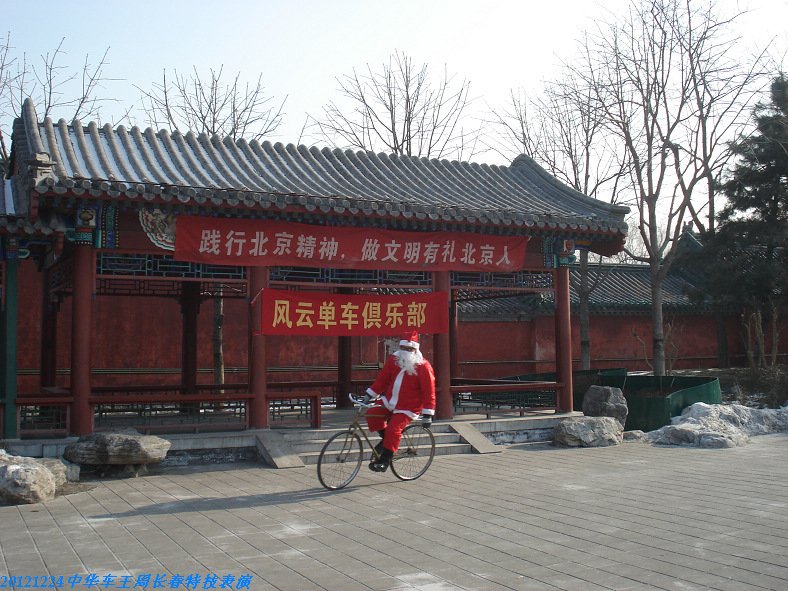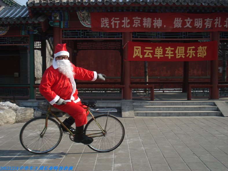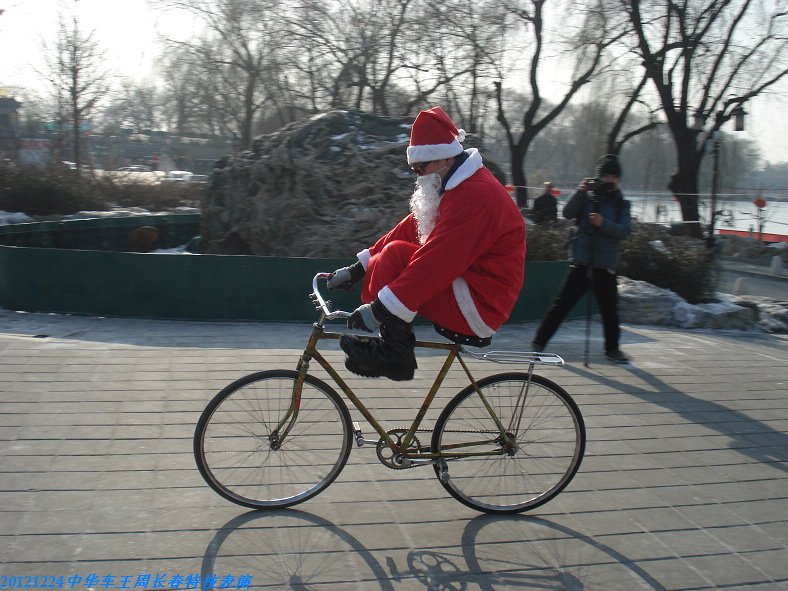 美国有“超人”那是科幻的,中国有“孙悟空”那是神话的,“地球超人”那是艺绝天下的。 第一次见“中华车王”周长春先生,还是在去年文博会风云单车的专场。当时“车王”以一辆没有车闸的普通自行车为道具技惊四座,眼花缭乱的动作看的人目瞪口呆。 今年的文博会风云单车文化展,“车王”又来了。而且带来了他的“2013倒骑车周游世界”的宏伟计划!展会最后一天,“车王”神秘兮兮的拎来一个纸盒,告诉我,这是一套圣诞服——明天,也就是24号中午时分,他要在什刹海冰面表演特技!我当时应允,有时间,届时一定去给“车王”捧场。 24号,据说是30年以来,北京最冷的一天。我提前一小时到达约定地点,带着风云的条幅、袖标,代表风云单车29000注册会员见证“车王”这一历史时刻。 (注:特技表演,非正常骑——专业特技,请勿模仿) ![]() ![]() ![]() ![]() ![]() ![]() ![]() ![]() |