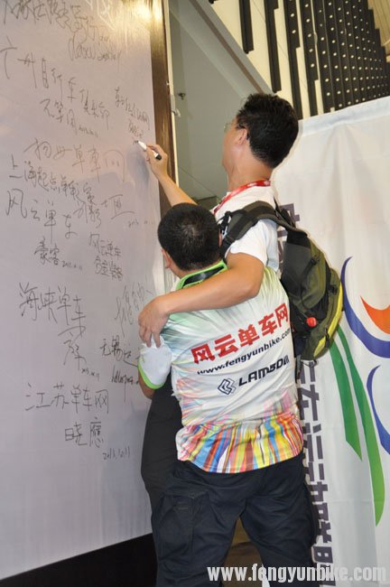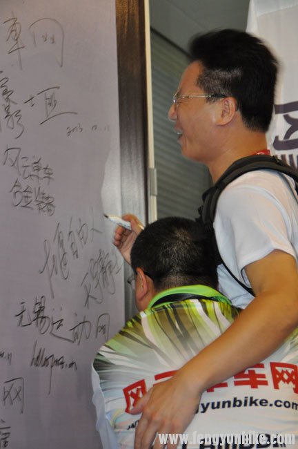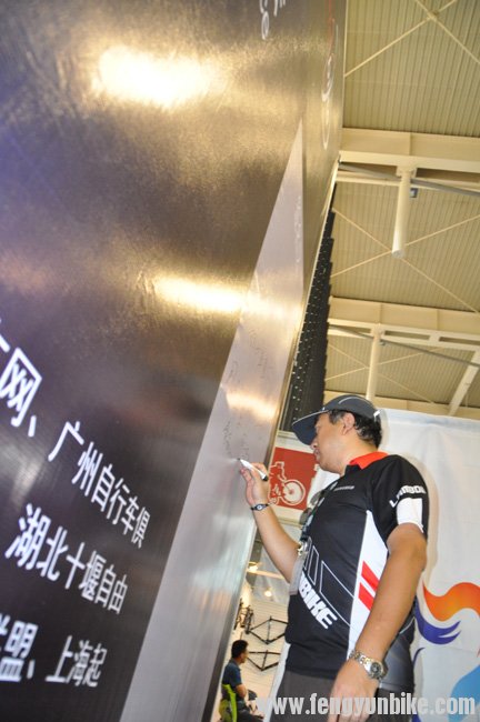 2013中国南京单车展论坛站长签名区,大家蜂拥而上签上大名,老孙在签名时发现没地方了