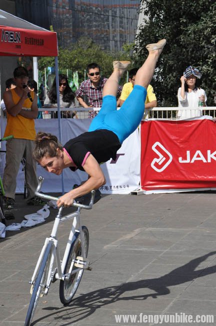 : 2013年南京车展馆外死飞表演,车友们看的是非常爽,叫好声一片片地,很多车友也都知道她,她就是来自德国的朋友 伊泉 ,对她的死飞表演也是赞不绝口。 ...