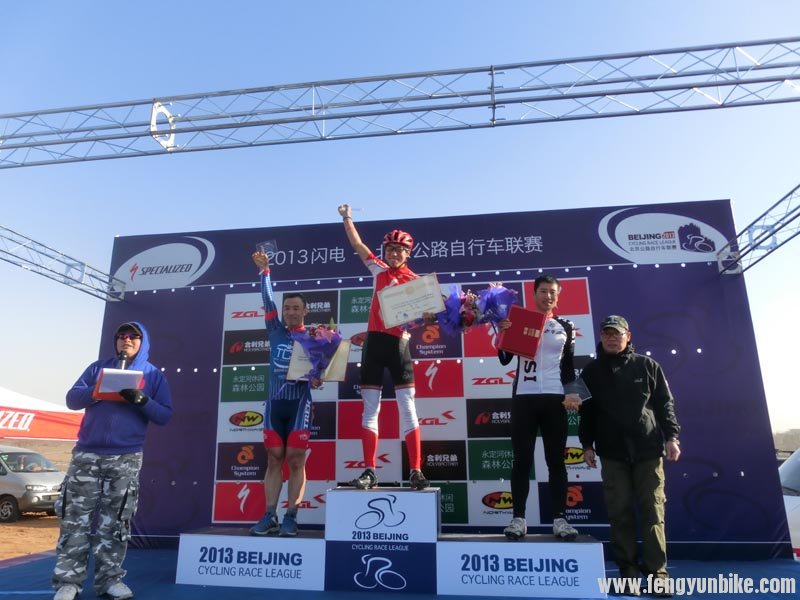 闪电公路联赛第一站,张含、胡恒、李刚分获前三名,图为颁奖照片。