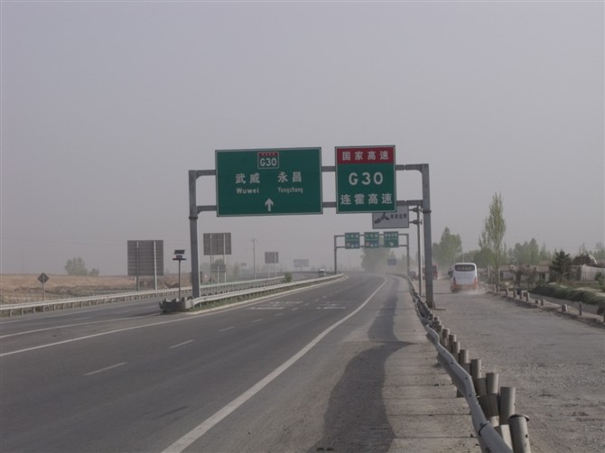出古浪,高速和国道分开了。这一段国道破烂不堪。真想上高速骑行,但又怕中途被高速巡警赶下来,就没敢上。