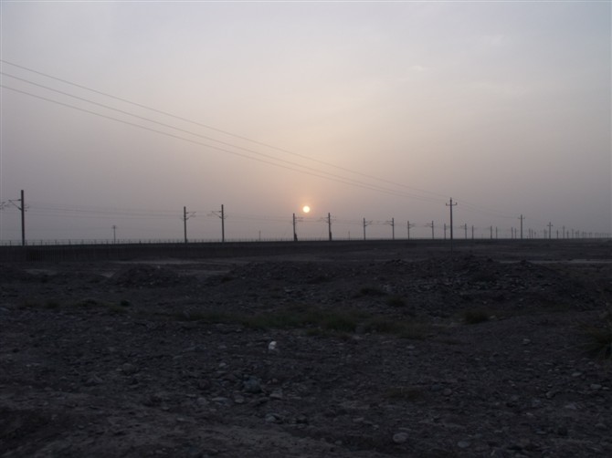 大漠孤烟直,长河落日圆。看着这戈壁心里发慌,完全没有了那种诗情画意般的感觉。一路祈祷上天,千万别来一群野狼把我围攻了,不知道究竟能否遇上“野狼”。我都做好战斗的准备了。就想能尽快冲出戈壁,赶到永昌,吃个晚饭,睡一觉。
