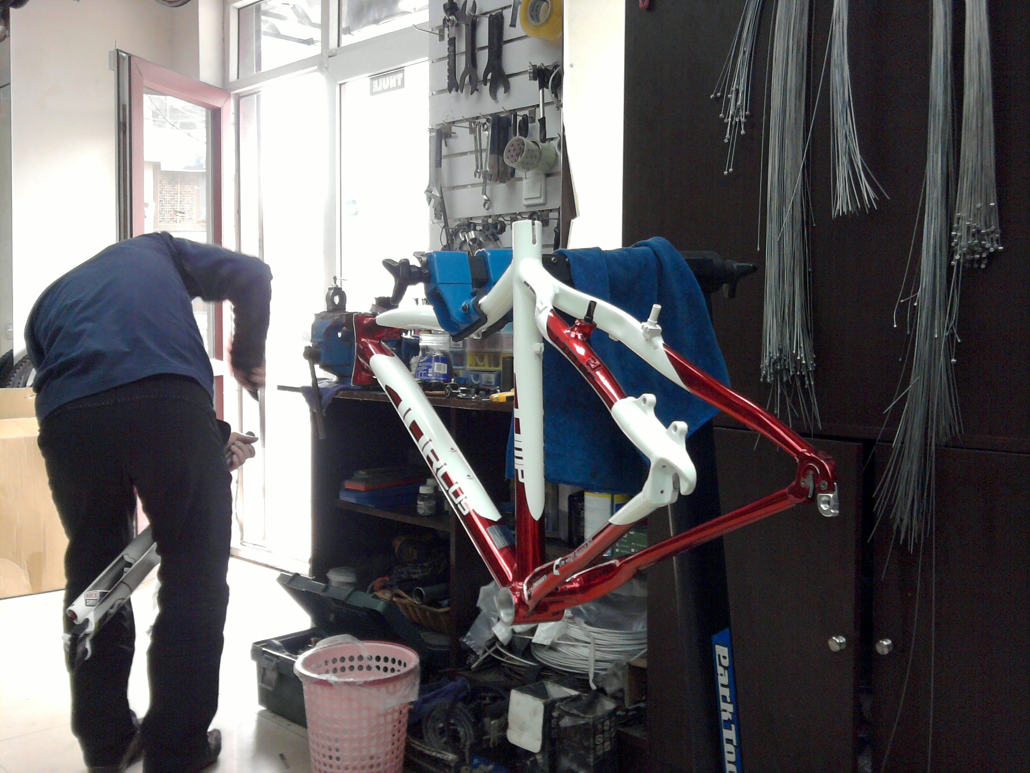 终于按捺不住想跟大家一起骑行出游的念头,今天,去童叟无欺-老姜的东升车行组装了一辆车子~(激动ing。。。此处略去N个字)。 在此,要多谢莫莫、混沌、老姜,还有风云单车群里众多的朋友们告诉我关于车子的一些知识,让我分享你们的快乐,谢谢你们~~! 呵呵