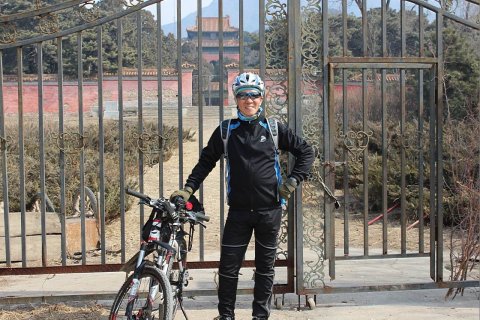 3月5日那天,老哥们是商量好了要去这个思陵,去吃烙糕宴的。我事先建议大家,先去一趟十三陵的景陵。因为前几次,其他几个陵都走了一遍,只有这个景陵给拉下了。可是大家对这个烙糕宴的兴趣,要远远地大于去这个陵园。所以,我也只能是先随队一道骑行到了这思陵宴的住地。正好有潘老哥和周大姐表示,他们想去这个景陵去看看。正中下怀,我是求之不得呢。先去景陵走一趟,回来时,还吃得多呢!不过,还是主要我个人对这些嘛,有些喜欢,还是想去看看。我们决定后,向老队长、新队长请假,我们三人一行,直奔景陵就出发了。队长给我们的要求是在:11:30分时,必须回来,大家好一道开饭。行!我们就急冲冲地奔向了景陵。我只知道这景陵是在长陵与永陵之间的地方,具体位置,我也不是太清楚的。到了长陵,我们就打听。人家说,就在一个小坡上面就是。我们向前骑行了不到300米,还真的是找到了。非常地好找,只是大门紧锁,我们只能远远地向里面望一望的。照了几张照片,就急忙地赶回原地了。去时45分钟;回来时15分钟。全程,又是102公里。