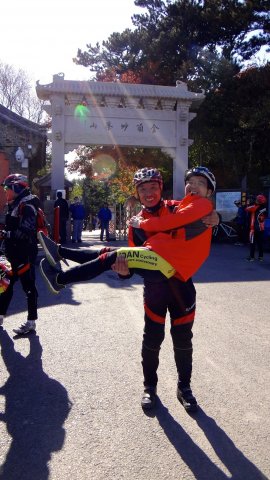 10月20日,是风云著名人物@毛老师不姓毛 骑车百天和生日(年龄保密了......),毛老师特地组织爬妙活动以资纪念。活动很精彩、很完美,除一人身体原因爬到涧沟就到大四合院休息外,其余9人,还是10人呢,反正吃饭的时候是10人,不仅都爬上去了,而且都进了100分钟。最精彩的非毛老师莫属,骑车仅100天,爬妙峰山仅用87分钟,大家就发挥您的想像力吧!哈哈..... 午饭后,和@小车慢慢骑 同路返回,骑至老山时,小车慢慢骑建议去风云办公室报喜去,结果是地球人都知道毛老师87分钟的爬妙成绩了。 在准备去风云办公室的过程中,有意思的是小车慢慢骑只记住在老山西街、我只记住在19号院109室,两个臭皮匠也顶一个诸葛亮了。 节假日坚守工作岗位的豪客,辛苦了!