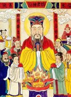 中国古代就有祭祀灶神的。魏晋以後,灶神有了姓名。隋杜台卿《玉烛宝典》引《灶书》称,“灶神,姓苏,名吉利,妇名搏颊”。唐李贤注引《杂五行书》又称,“灶神名禅,字子郭,衣黄衣,披发,从灶中出”。灶神初为女神,或称是老妇,或称是美女,说法诸多。大约出于清代的《敬灶全书》则称,灶君姓张,名单,字子郭,当属男神。现在民间供奉的东厨司命定福灶君,是一对老夫妇并坐,或是一男两女并坐,即灶君和灶君夫人的画像。