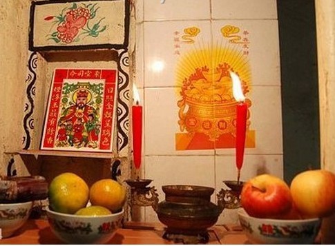 祭灶,是一项在我国民间影响很大、流传极广的习俗。旧时,差不多家家灶间都设有“灶王爷”神位。人们称这尊神为“司命菩萨”或“灶君司命”,传说他是玉皇大帝封的“九天东厨司命灶王府君”,负责管理各家的灶火,被作为一家的保护神而受到崇拜。灶王龛大都设在灶房的北面或东面,中间供上灶王爷的神像。没有灶王龛的人家,也有将神像直接贴在墙上的。有的神像只画灶王爷一人,有的则有男女两人,女神被称为“灶王奶奶”。这大概是模仿人间夫妇的形象。灶王爷像上大都还印有这一年的日历,上书“东厨司命主”、“人间监察神”、“一家之主”等文字,以表明灶神的地位。两旁贴上“上天言好事,下界保平安”的对联,以保佑全家老小的平安。