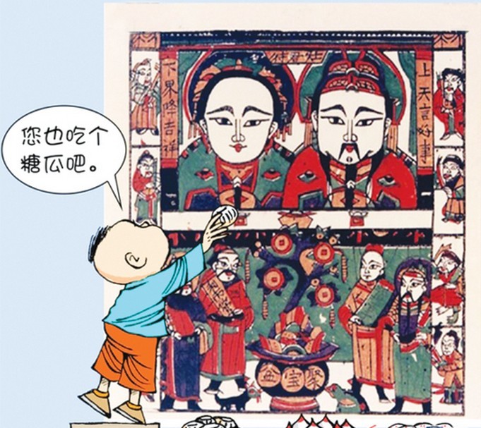 小年这天,也是民间祭灶的日子。民间传说,每年腊月二十三,灶王爷都要上天向玉皇大帝禀报这家人的善恶,让玉皇大帝赏罚。因此送灶时,人们在灶王像前的桌案上供放糖果、清水、料豆、秣草;其中,后三样是为灶王升天的坐骑备料。祭灶时,还要把关东糖用火融化,涂在灶王爷的嘴上。这样,他就不能在玉帝那里讲坏话了。另外,大年三十的晚上,灶王还要与诸神来人间过年,那天还得有"接灶"、"接神"的仪式。等到家家户户烧轿马,洒酒三杯,送走灶神以后,便轮到祭拜祖宗[1]