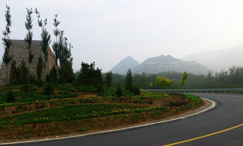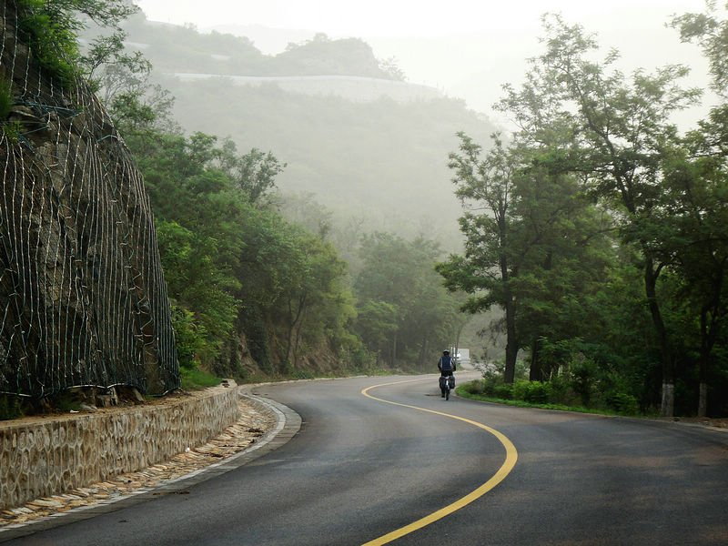 第二天的行程,堪称最美的一天。清晨起来一上路,就开始爬行了好几公里的大坡,见到了本应昨晚看到的白河堡水库,虽然是个有雾的阴天,却也给白河堡水库带来了几分神秘感。这里也是从长陵开始,一直伴随我们左右的S212省道的尽头,进而踏上了最为优美的S309之路……