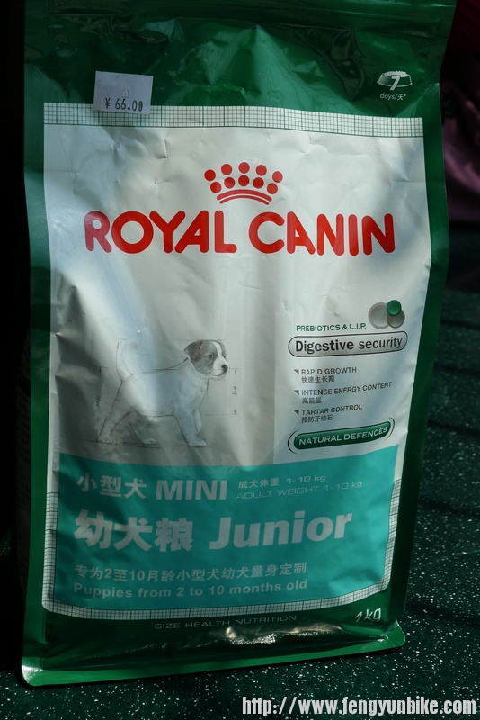 虽然俺这个人平时挺倔强,自己认准的事情,轻易不被别人所左右,但这次俺还是听从了人家的建议,放弃了用肉类食品给小家伙快速增加营养的念头,买了一袋皇家二至十个月幼犬狗粮。人家建议先用温水把狗粮泡软了再喂小家伙,这个俺没听,直接把小狗粮塞进小家伙的嘴里面,哇噻,小家伙吃的那叫一个香。因为是第一次给小家伙喂狗粮,没敢给它多吃,只喂了十来粒,看看反应如何,再逐步增加喂食量吧。