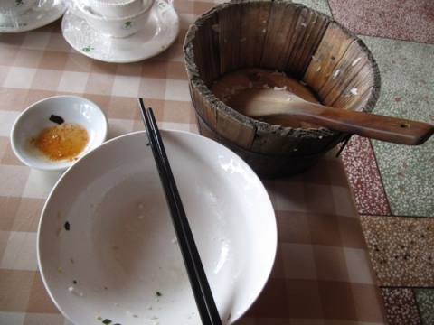 照片描述:我是边吃边照看我的车子,我在这个饭馆里把水杯灌满。 照片描述:要了两桶米饭,全部吃干净。感谢老板给了一块酱豆腐,不然没有菜了。 吃完饭继续前进,路牌显示南岳衡山景区在G107国道右手4公里处,既然来了经过于此不能错过,不就是多骑几公里路嘛,右转奔向南岳衡山。到大门口照相留影,打听南岳衡山是烧香的地方,就没有花钱进去,看看就很满足了,因为我来过了。下午一路起伏路比较缓和了,我6点达到湖南衡阳市区,繁华的街道和高耸的高楼让我即熟悉又陌生。过了桥,进入公交车和自相车多的路段,天彻底黑了,发现路边有炸臭豆腐的,好香啊,我也不找什么旅店了,先吃再说。推着车等我的爱的各种小吃,这里什么吃食都有,当然我还是尽量吃面食,发现馄饨吃馄饨,味道还行。等吃的差不多了,身边就有个旅舍,繁华地段找个小旅社,高兴,晚上能去网吧了。 早餐:5元(米粉4元,炸南瓜饼1元),中餐:17元(炒藕+米饭),晚餐:13元(小吃)。住宿:30元。网吧:4.5元。共计花费:69.5元。骑行133公里.