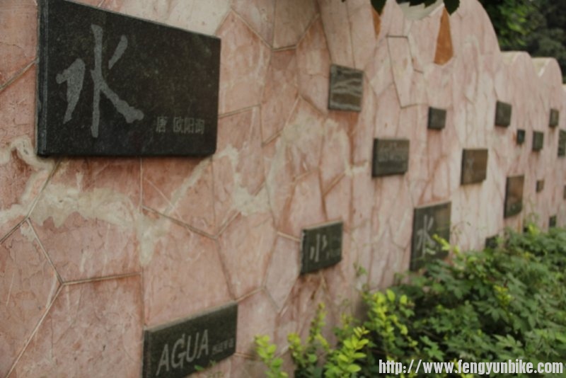行没多远,忽见右边一大片水域,墨绿青山环抱其中,青翠礁屿浮出水面,心想此处应该是密云水库了。路边一面墙上,用各种字体、语言书写了好多“水”字,正合了本次亲水之旅。回想前年十一,携夫人共同来此,当时背着各种食物,翻墙进入其中,刚刚在水边坐定,立刻遭到驱赶。此次水库尽收眼底,只可惜雾蒙蒙的,看不真亮。稍事休息后,继续前行。