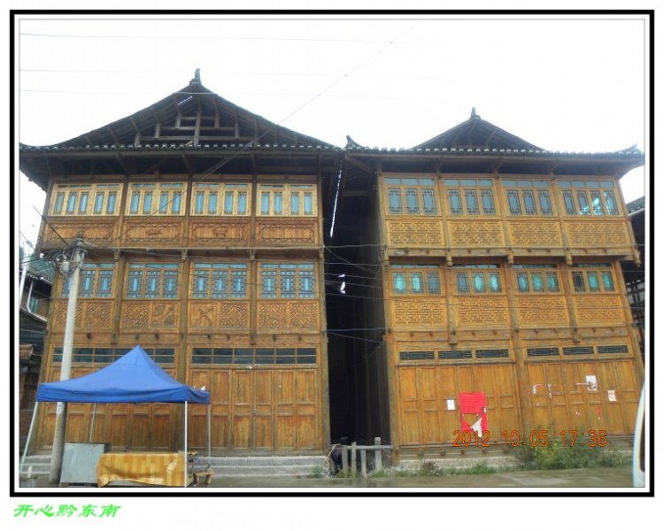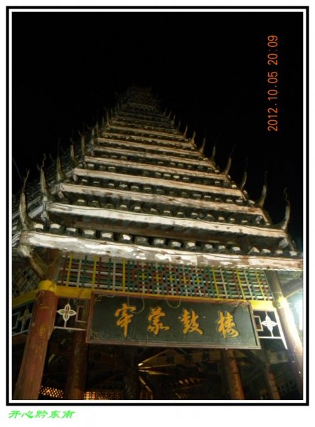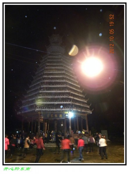 广场上有一座十五六层的木塔,侗族的兄弟姐妹们在木塔下做着表演前的准备工作。