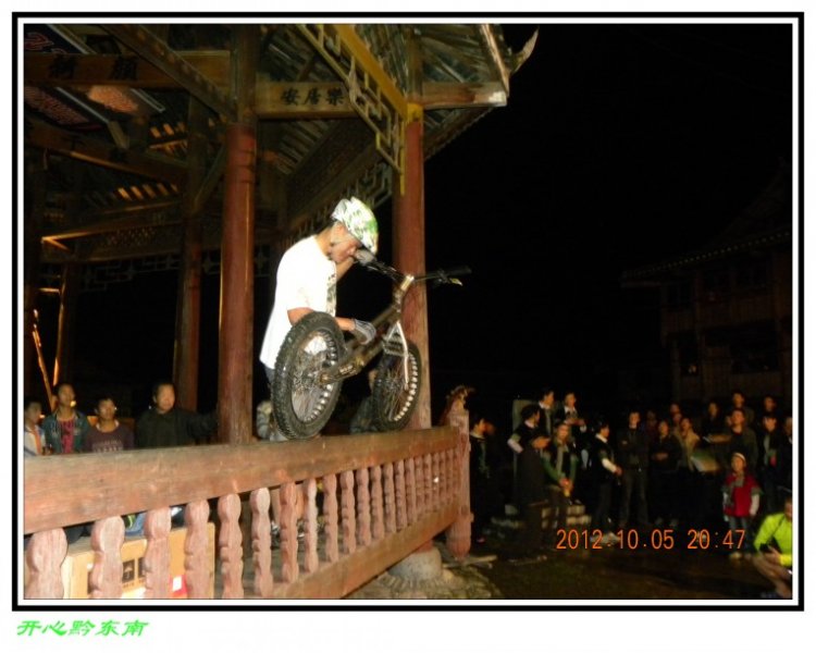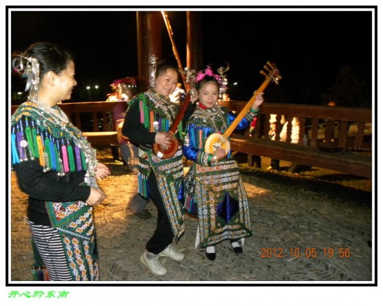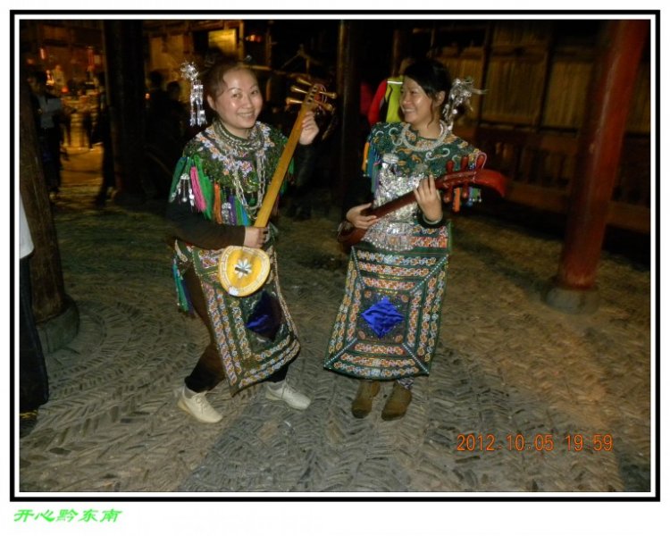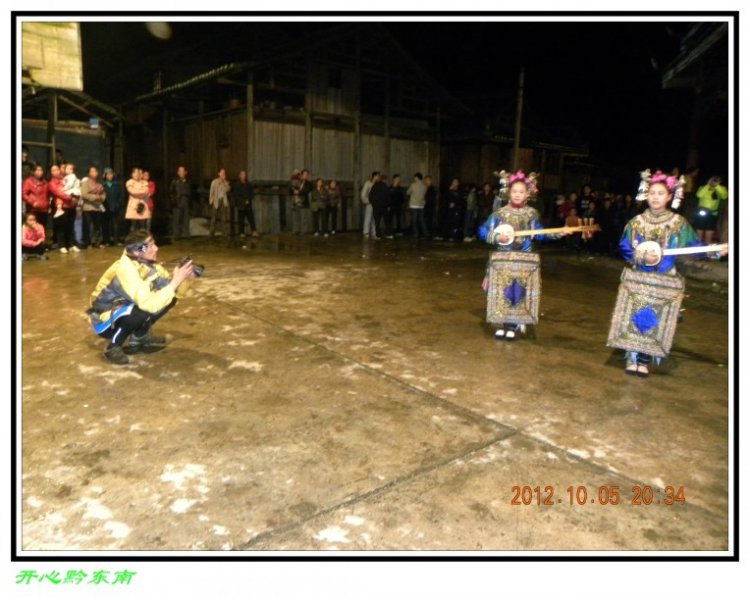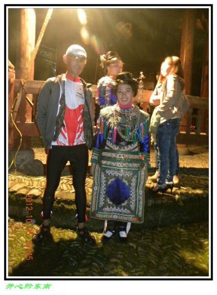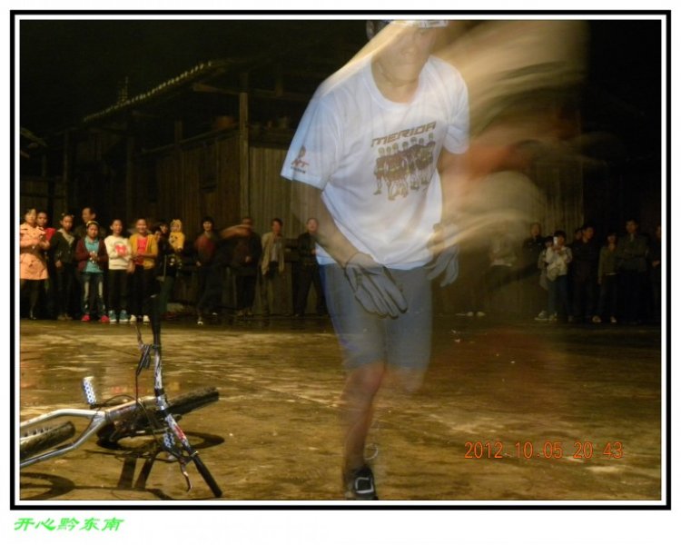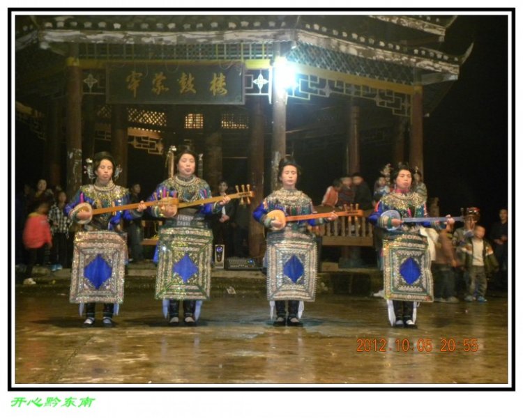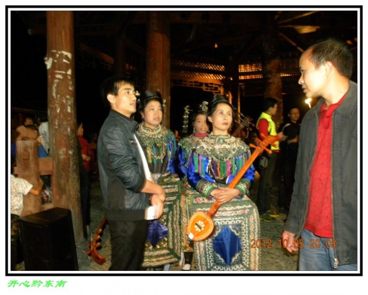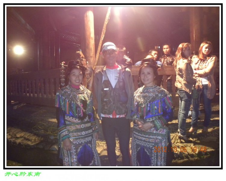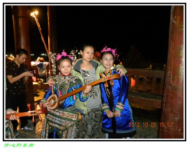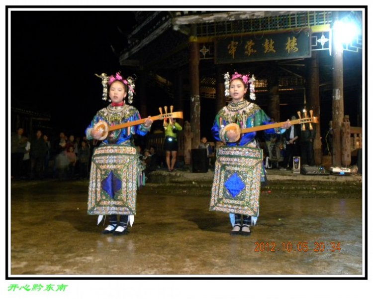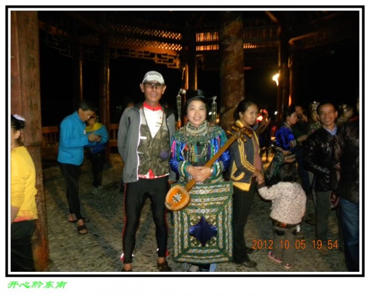 两个十四五的小姑娘表演原汁原味的侗族弹唱(其他的侗族歌舞请看视频),车友也表演了车技。