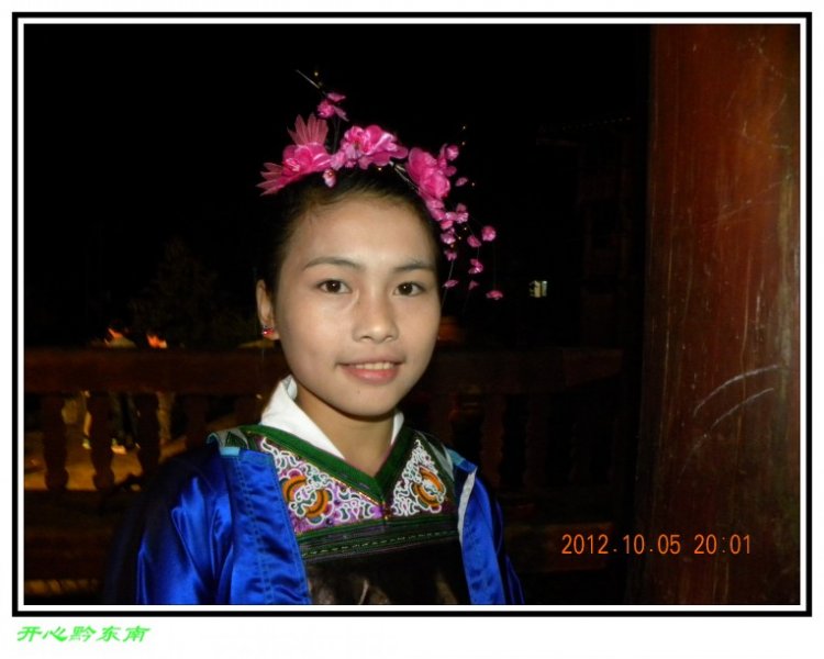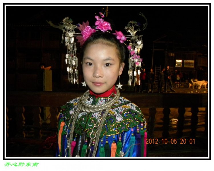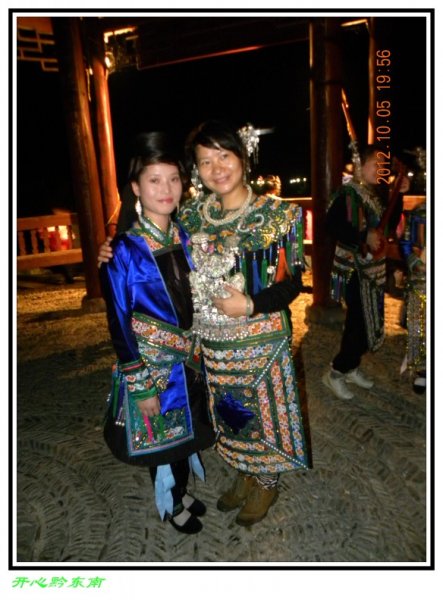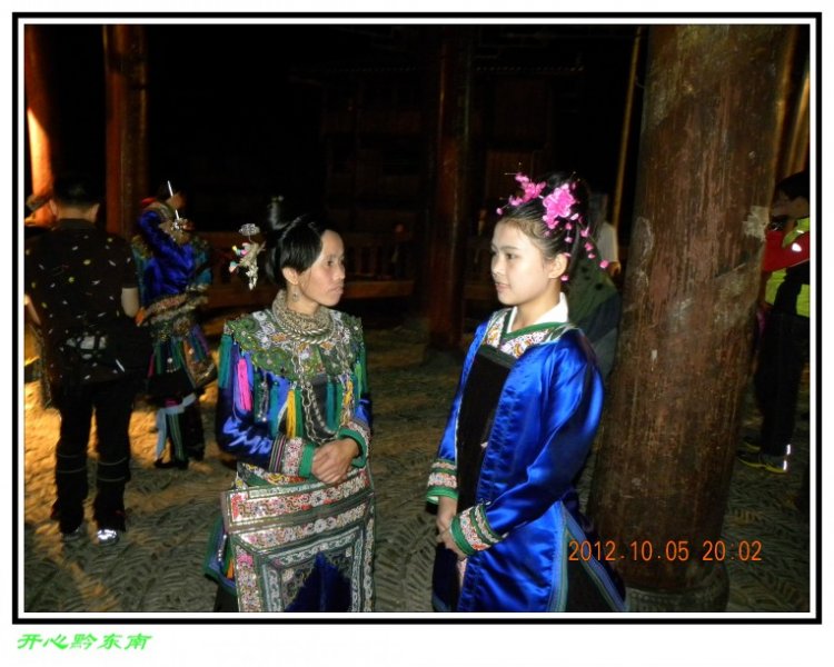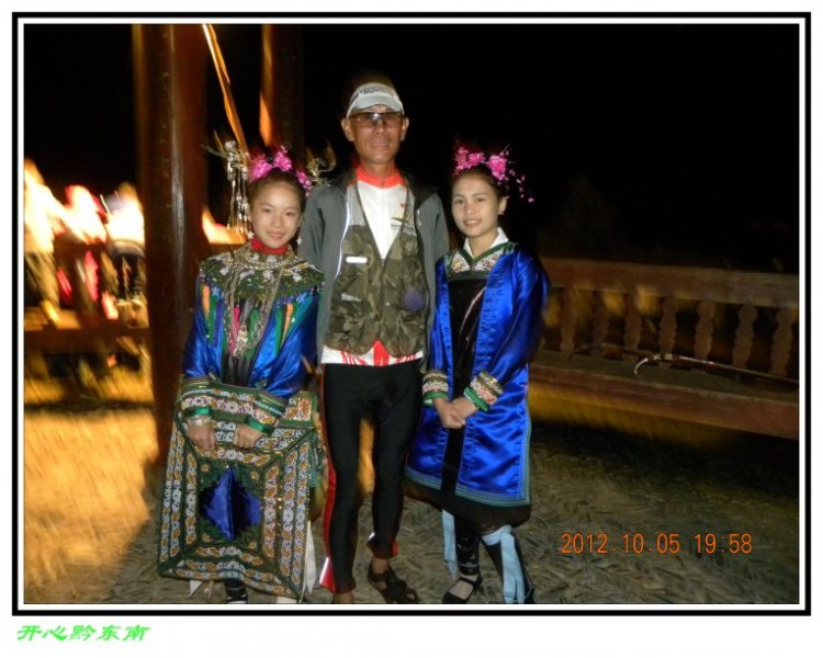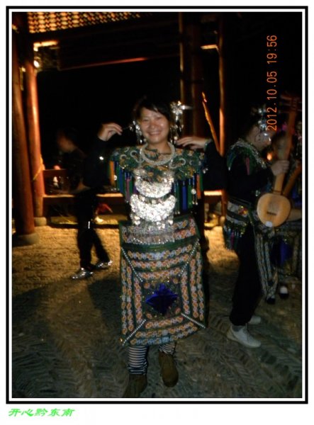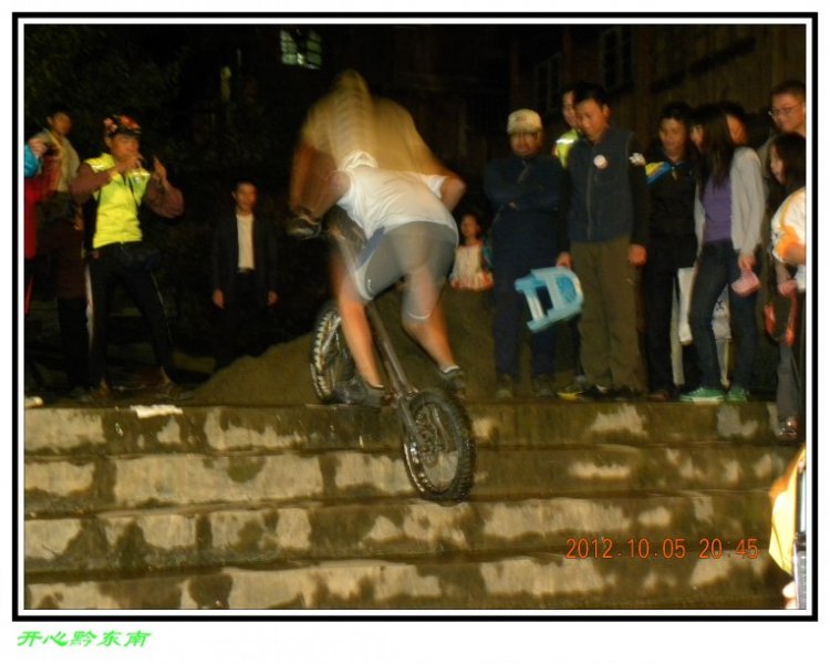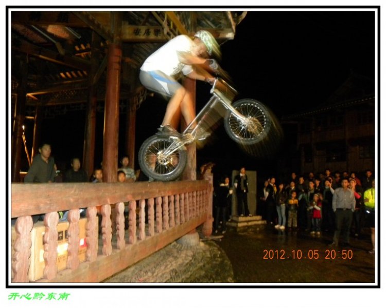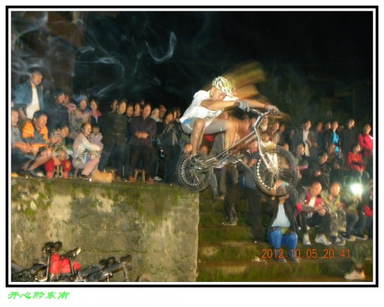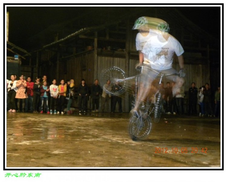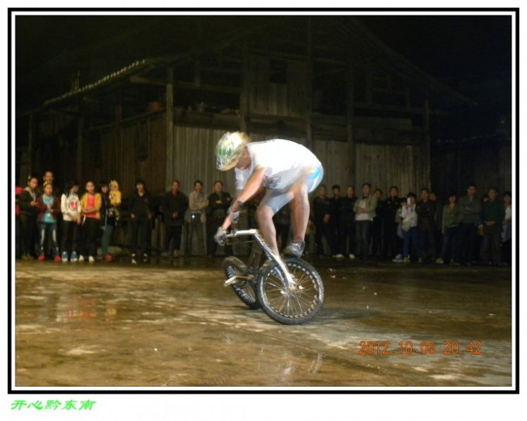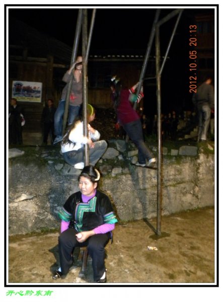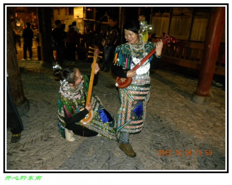 两个十四五的小姑娘表演原汁原味的侗族弹唱(其他的侗族歌舞请看视频),车友也表演了车技。