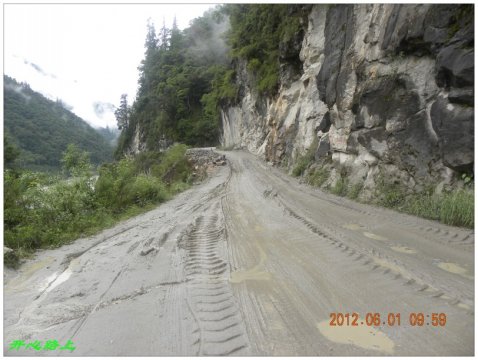 下到坡底,公路从陡坡变成了缓坡,山脚下一片葱绿,到处都长满了茂盛的植被,如果不是偶见的经幡和白塔,几乎就和内地山区的景色没什么两样,从垭口到这里海拔大概下降了将近2000米,气温也随着海拔的下降快速回升,我脱掉厚厚的冲锋衣和内胆,只留下里面穿的一件短袖衫,接着向着林芝县城骑过去。