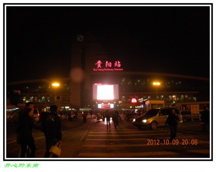 到了贵阳雨不下了,打听去火车站吧连司机都没说清楚,也可能是我没听清楚。哎!边骑边打听吧,快7点了我算真的进城了,在路边一个小饭馆吃了晚饭。吃饭时又打听了一下,一个非常热心的小伙子,告诉我好几遍去火车站的路线,这回我是记住了,饭后我左拐右拐上坡下坡,终于在8点看见了贵阳火车站。