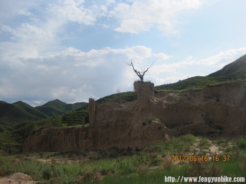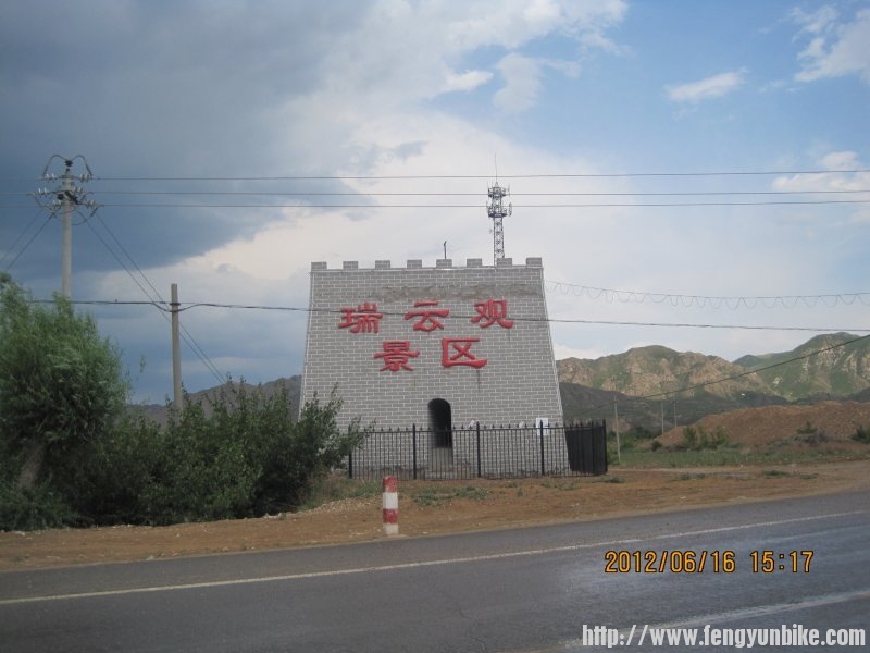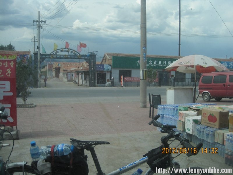 向镇边城出发 这时 天上飘过来一片乌云 马上就下起了阵雨 到一个小亭子里躲了10分钟雨 雨不下了 可是风却很大 我和慢牛蹬啊蹬啊的 明明就是一个缓上坡 怎么速度就不到10/小时啊 就和爬妙峰山的陡坡一样啊 命不好啊