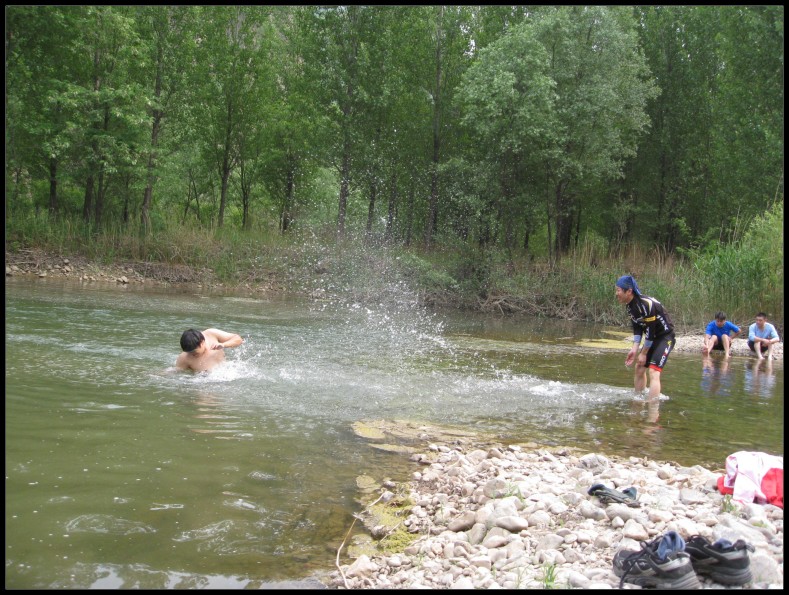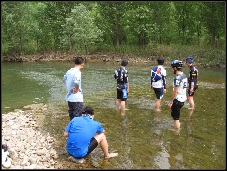 中午十二点到达千家店,找到一处农家院吃午饭,终于我也被老板算的账给带到沟里了,不知道是不是有方言隔阂,中午是和中途遇到的七人骑行队合并用餐的,男主人说人均28,虽然肯定了28包括全部,但结账时女主人却说只是饭菜人均28,不包括西瓜饮料等,我那个去,那七人骑行队交了人均28早已骑车走了,大家主动平摊了那七人应AA的部分,真让我感动加郁闷!
