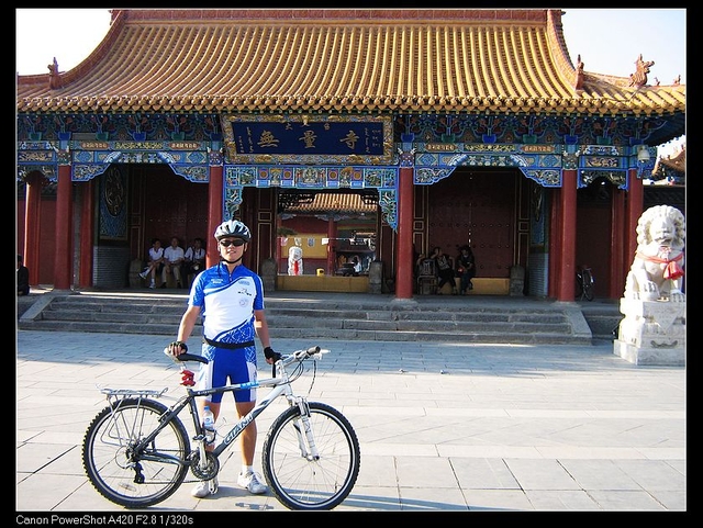 下午一起骑车去逛了古街、车行,然后去陶伟家小小休息了一下,我因为想去参观大召寺,于是告辞,一个人又骑车去了大南街那边。买票进去,发现这一身骑行服、墨镜、头盔,出现在寺庙里,回头率很高,有许多怪异的目光在看我。这样感觉太不自然,匆匆参观了一会就赶紧落荒而逃了。