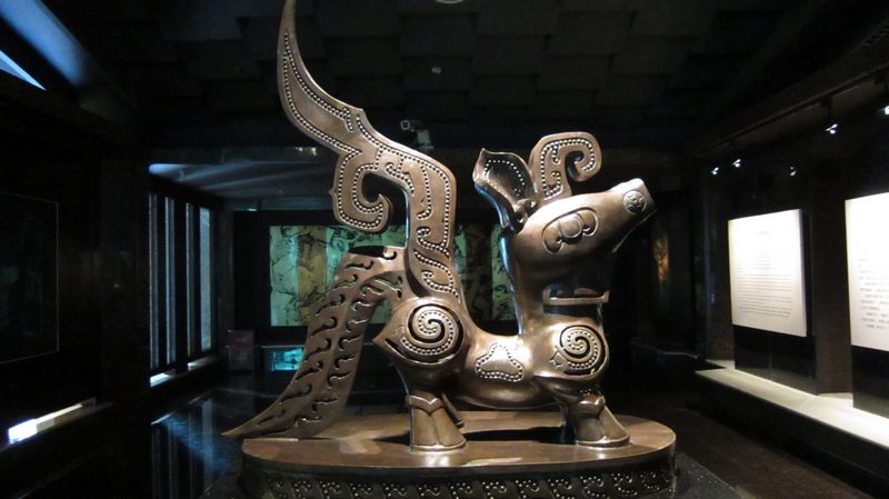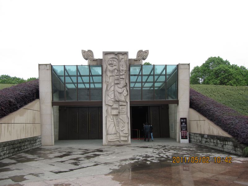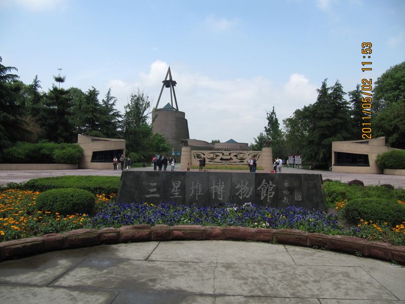 今天早上天还是不停地下着小雨,我们大家吃完早饭8点出发了。今天我们先去广汉市参观三星堆,一路顶风来到了广汉市,然后顺着河的南面的路向西骑行7公里,来到了三星堆遗址。门票:82元。三星堆的出土文物至今还是个迷。