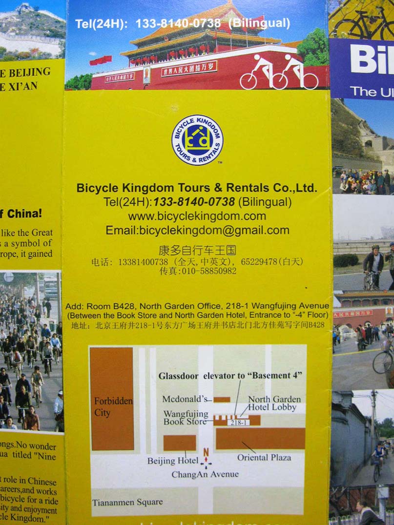 这个是王府井书店门前胡同游的自行车~ 租车电话:65281218