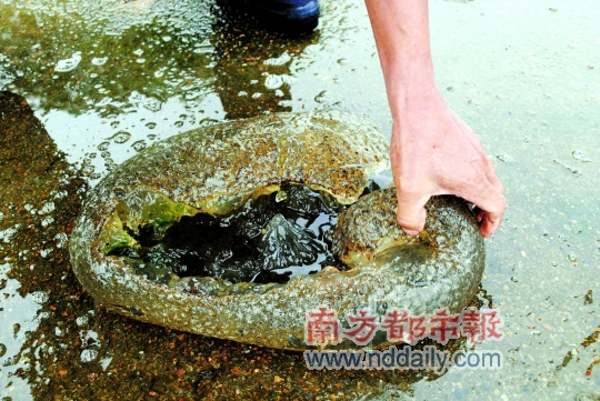 一个月前,镇南村许多村民在当地竹洞湖里发现许多恐怖的“丑陋水怪”,这种“水怪”身体在水里呈球状,半透明像果冻,体内还有红色的血丝,表皮上布满了许多小孔,看着有点似长了许多“眼睛”,村民金吉松告诉记者,由于这几天章镇地区雨水不断,这种“水怪”仿似少了许多,但只要是晴天,竹洞湖的水面上就会漂浮起大片的“水怪”,大的有小洗脸盆大,最小的也有成年人的拳头一般大小,人去触碰的话会有小幅度的蠕动,曾有好奇的村民拿“水怪”在太阳下暴晒,发现经太阳晒过后“水怪”就会像棒冰似的化掉。