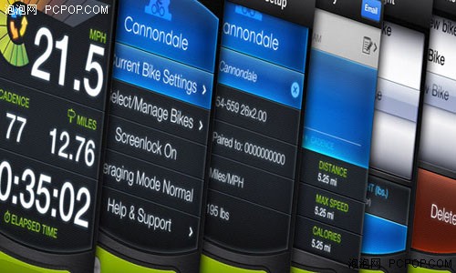 主磁性感应器和自行车轮轴通过电缆连接,随即发送2.4GHz射频信号到无线接收器上,交由iPhone的软件端处理数据。你可以在屏幕上清晰地观测到骑行速度、蹬踏频度、能量输出、卡路里消耗等等。