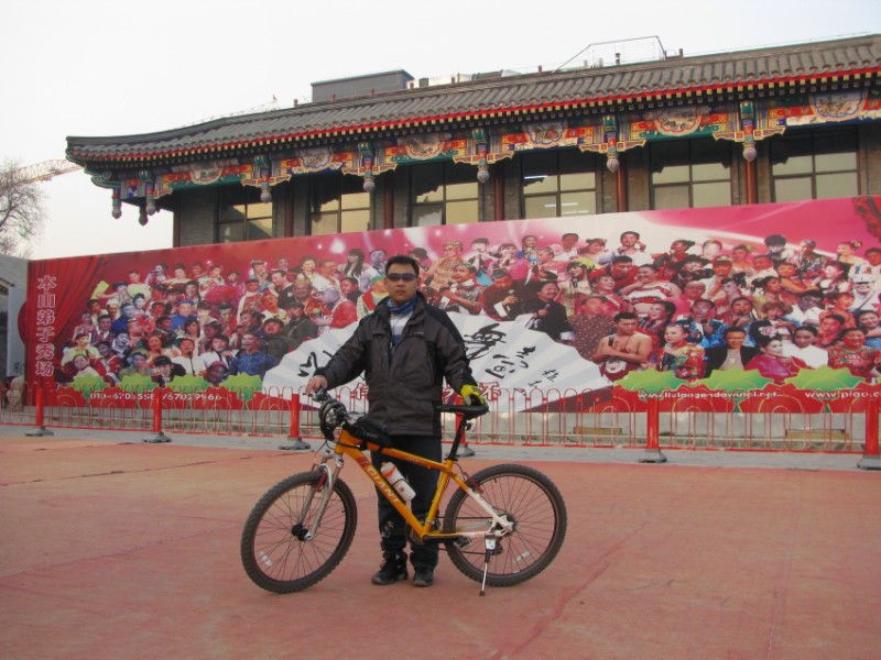 一张照片之后,再再再启程。。。。。  没想到的是 南苑路的交通状况那么差,路窄不说,汽车走自行车道也常见,行人就直接展成“一”字队伍横在机动车和非机动车道上,怎一个“汗”字了得  。纠结的骑了一半,我忍受不了了,掉头回家。