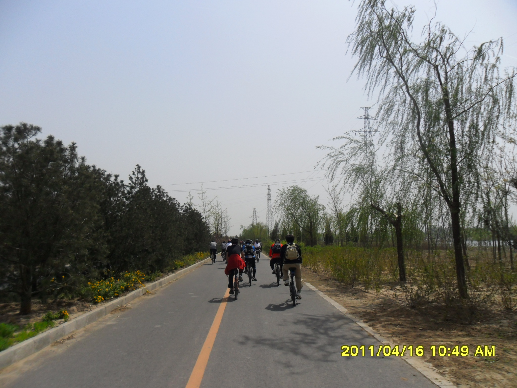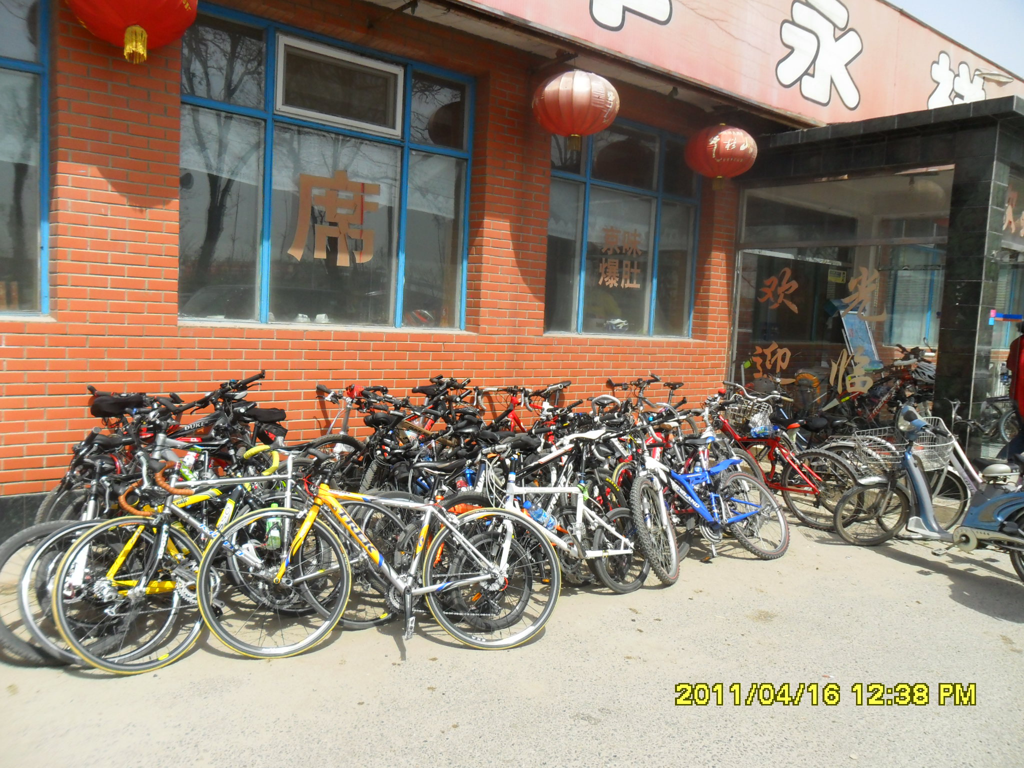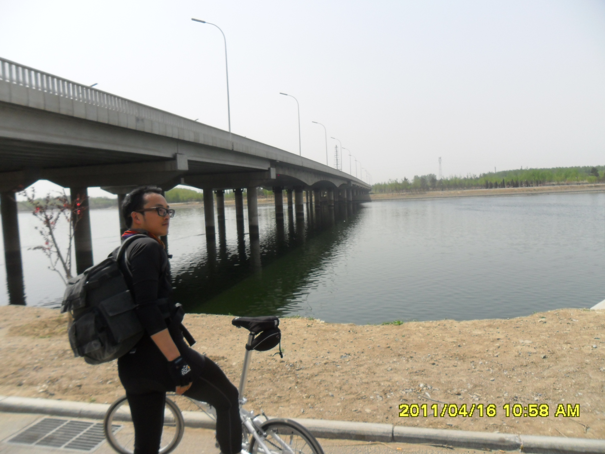 早晨起床洗漱完毕,与小南直奔早点摊,蒸饺,油条鸡蛋一通狂吃,七点准时出发直奔学院桥,到了学院桥只有一个人在等,我们三个人聊了一会,子曰,心如止水,马户于先后到达,8:20准时出发,健翔桥拉上希尔顿和他老婆,还有一位骑黄车穿黄衣的大姐,沿四环杀向第三集合点四惠,到达四惠以为今天人会少些没想到,老朋友来的不少,新朋友更多,大家厕所完毕开始出发!