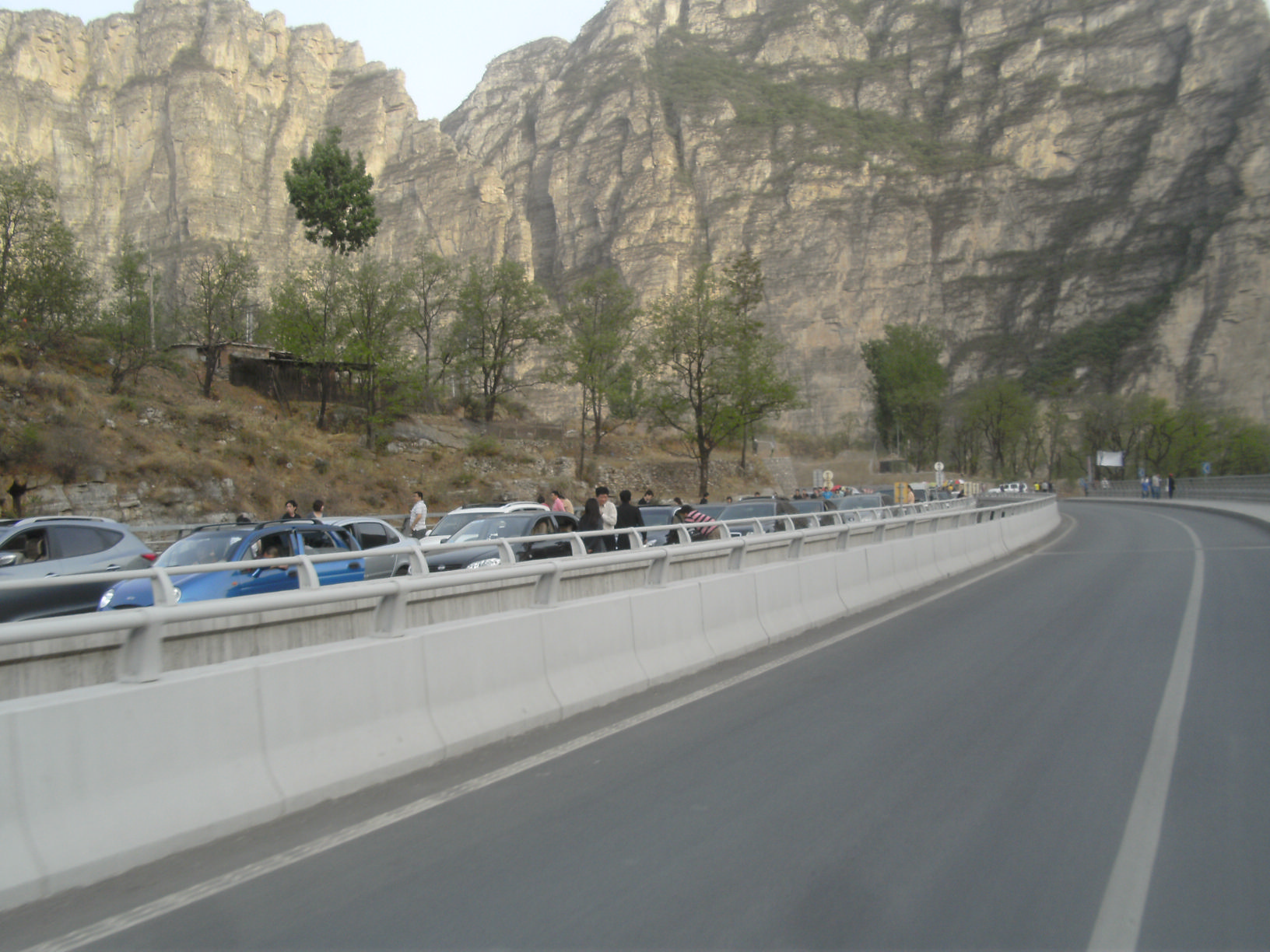 去程:全程平路,偶尔有一两个像立交桥一样的坡,从东直门出发到张坊100公里,有可能是过节的原因,路上车比较多。岳琉路刚修好,路面非常不错,车较少。快到张坊时,有一个叫大石窝的地方,全是卖石头的,灰特别大。
