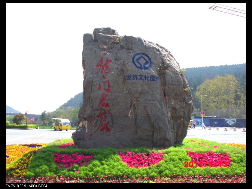 照片描述:楠楠帮助我们大家在龙门石窟照张合影。