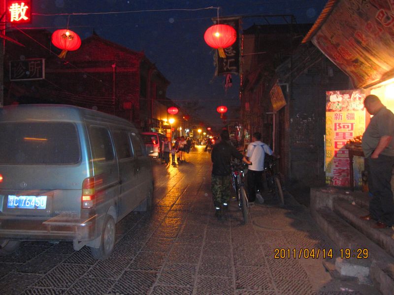 吃完洛阳水席,可能是晚上9点多了,风云单车猪悟能和他的好友热情地要求送我们回旅店(10多公里呢,他们就住在古城里),从餐馆出来,我们六人排成一个纵队,在古城的胡同里骑游,灯光是橘色的照着胡同里的街道,没有人,周围是郁郁葱葱的树,树后面就是住家的平房和楼房,像是60年代的建筑,住家里灯光和路灯的灯光都是通过树叶缝隙洒在胡同的地面上,没有任何声音,没有人走动,只是偶尔传来几声狗叫,只有自行车那美妙的机械声。古城胡同里全部是下坡加拐弯,速度极快,多亏风云猪悟能的手势及时、明确,这个手式在我们六个人中无声地一个一个地传送着,非常地爽,说话的声音都小声说,因为太静了,怕把这个静给打破了。全体队员找到了洛阳古城里骑游的美妙,有点舍不得明天离开洛阳了。