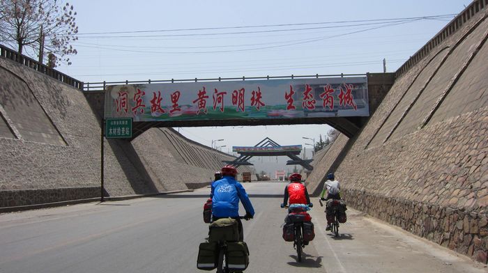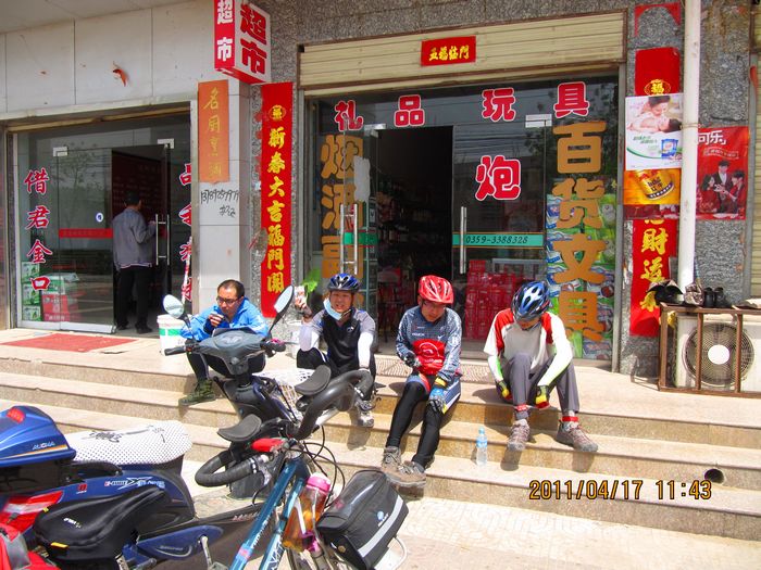 照片描述:到了风陵渡镇休息补水。