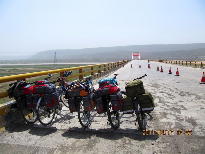 照片描述:准备过风陵渡黄河大桥。这是我们三过黄河了。第一个是河南新乡到郑州的新政黄河大桥;第二个是我们从三门峡出发到芮城过的三门峡黄河大桥;第三个就是这个风陵渡黄河大桥了。