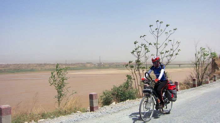照片描述:顶风骑行。
