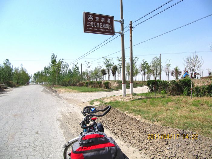照片描述:路牌上写黄 渭 洛三河汇流区观测台。我们拐弯看风景去了。