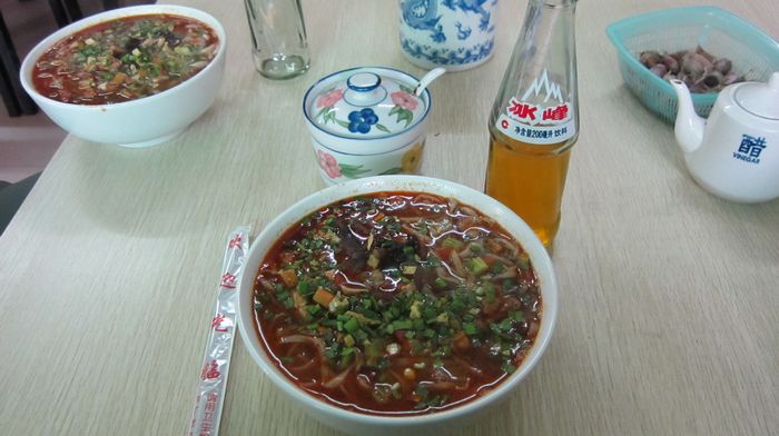 照片描述:在西安吃岐山臊子面,喝冰峰汽水。